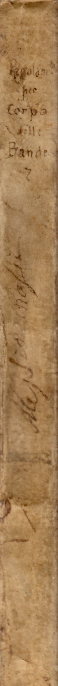 Rilegatura: m.pergamena con titolo manoscritto al dorso