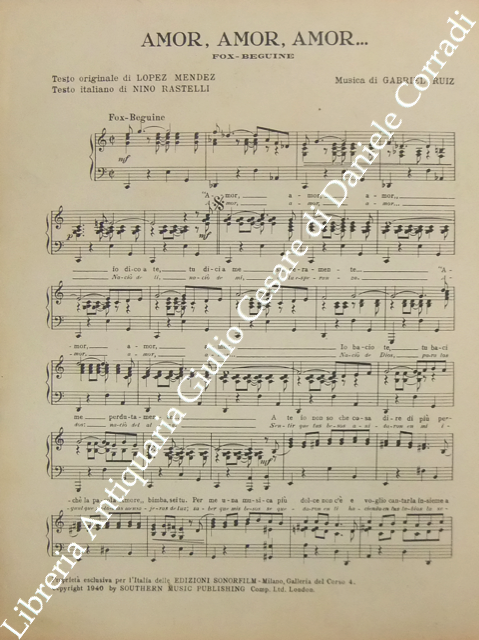 Amor, amor, amor. Fox Beguine. Testo italiano di Nino Rastelli