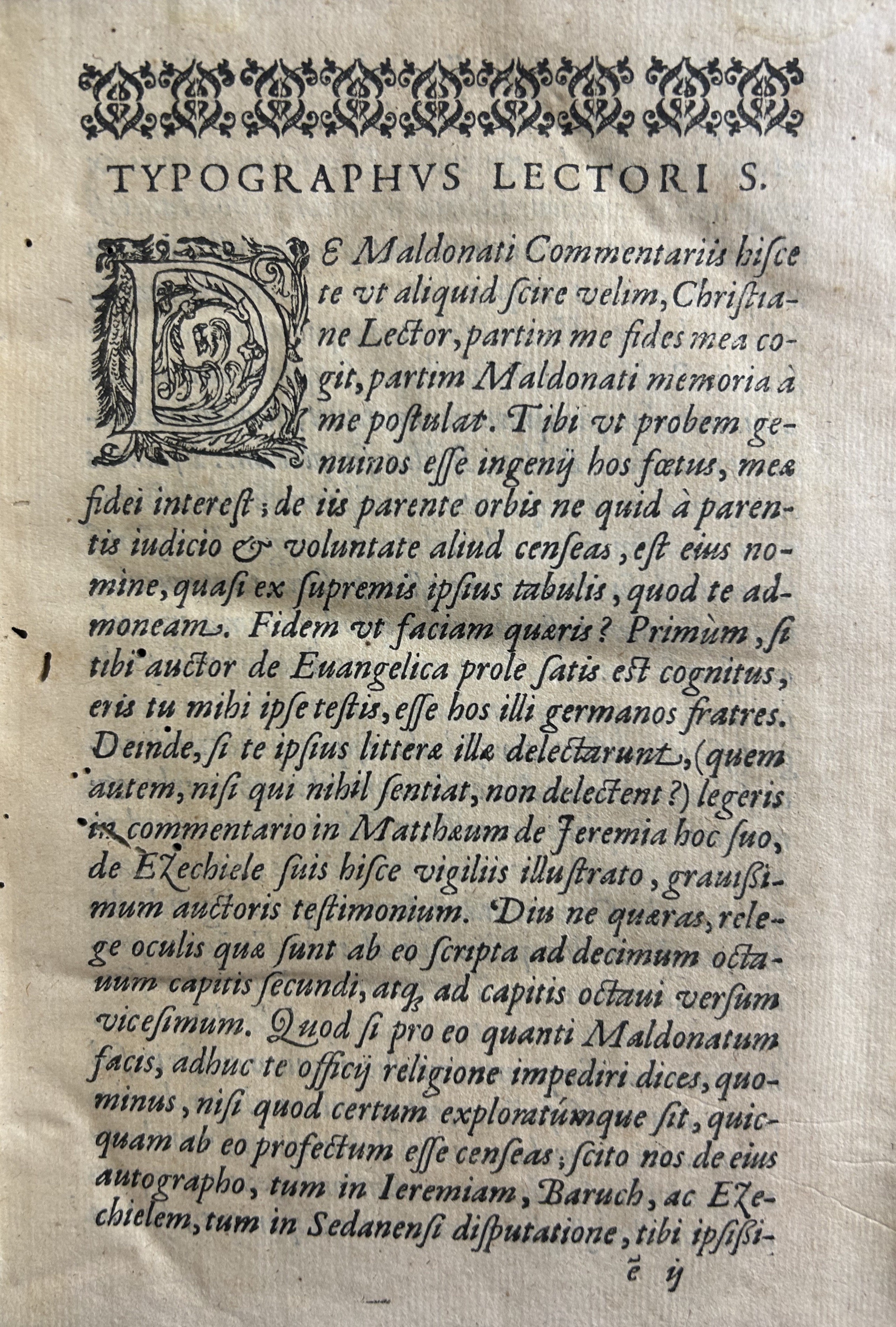 Pregevole marca tipografica xilogarafata al frontespizio, testatina e capilettere ornati