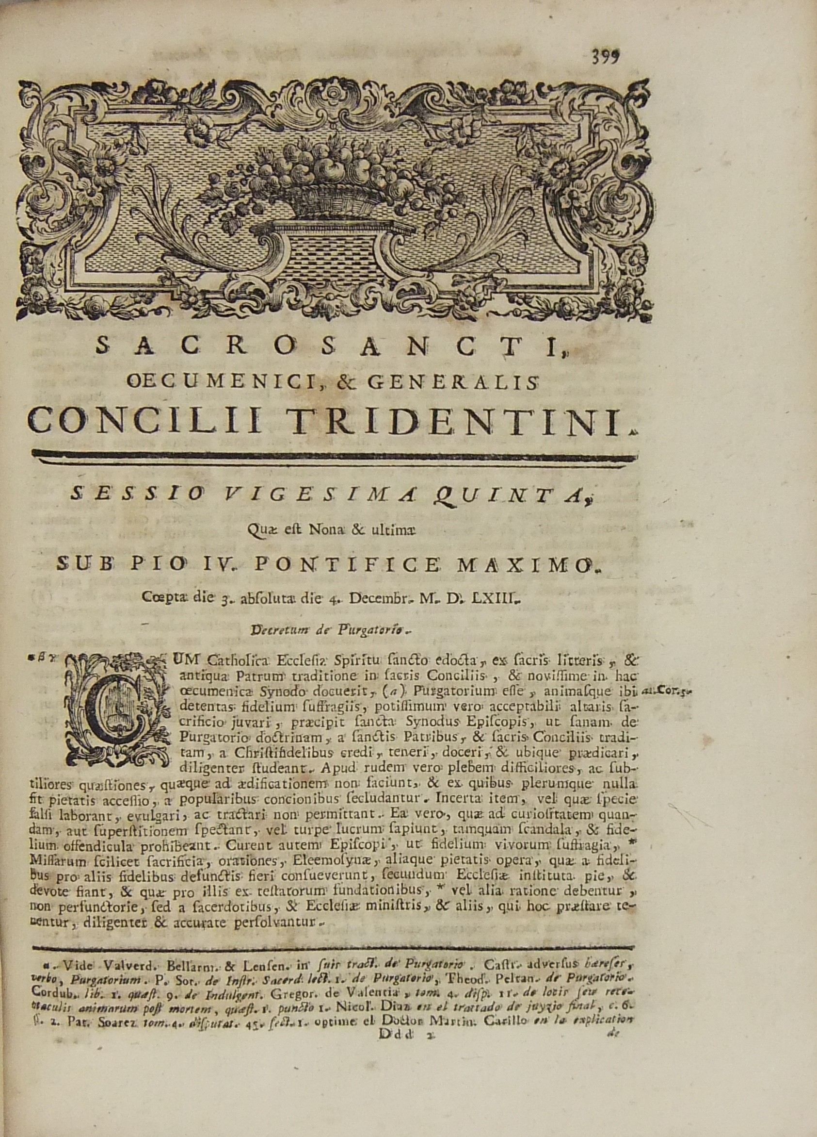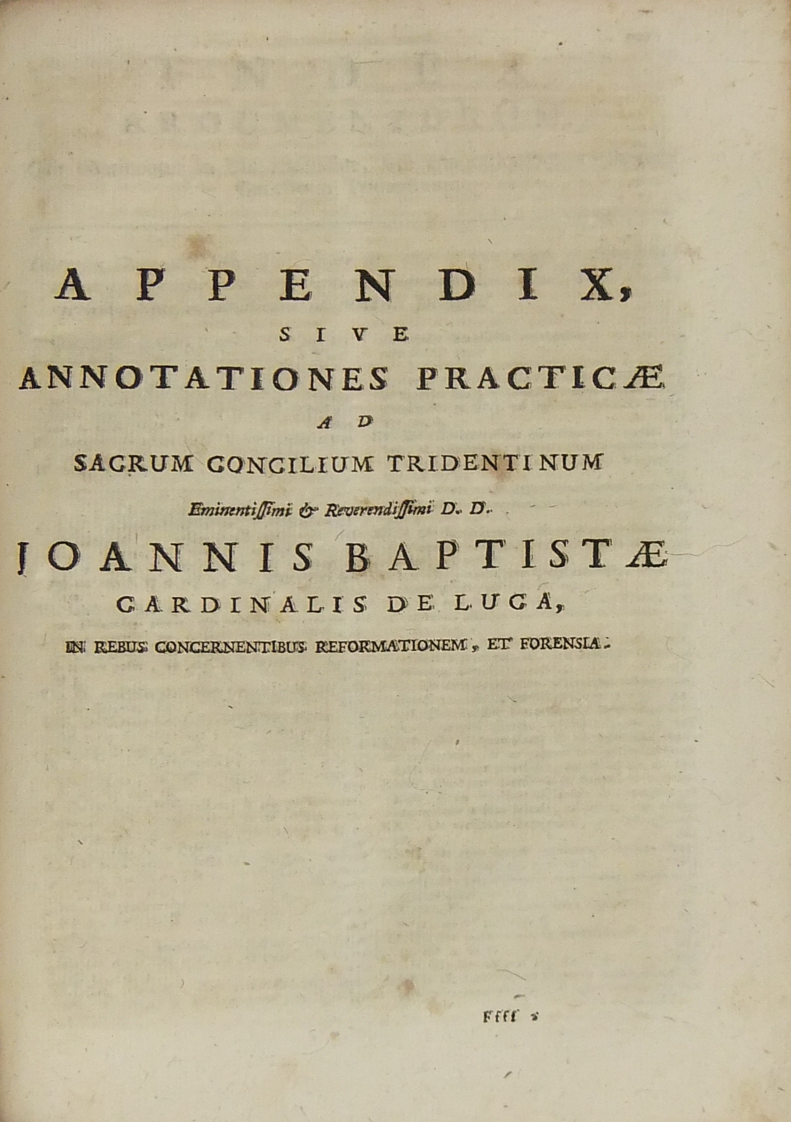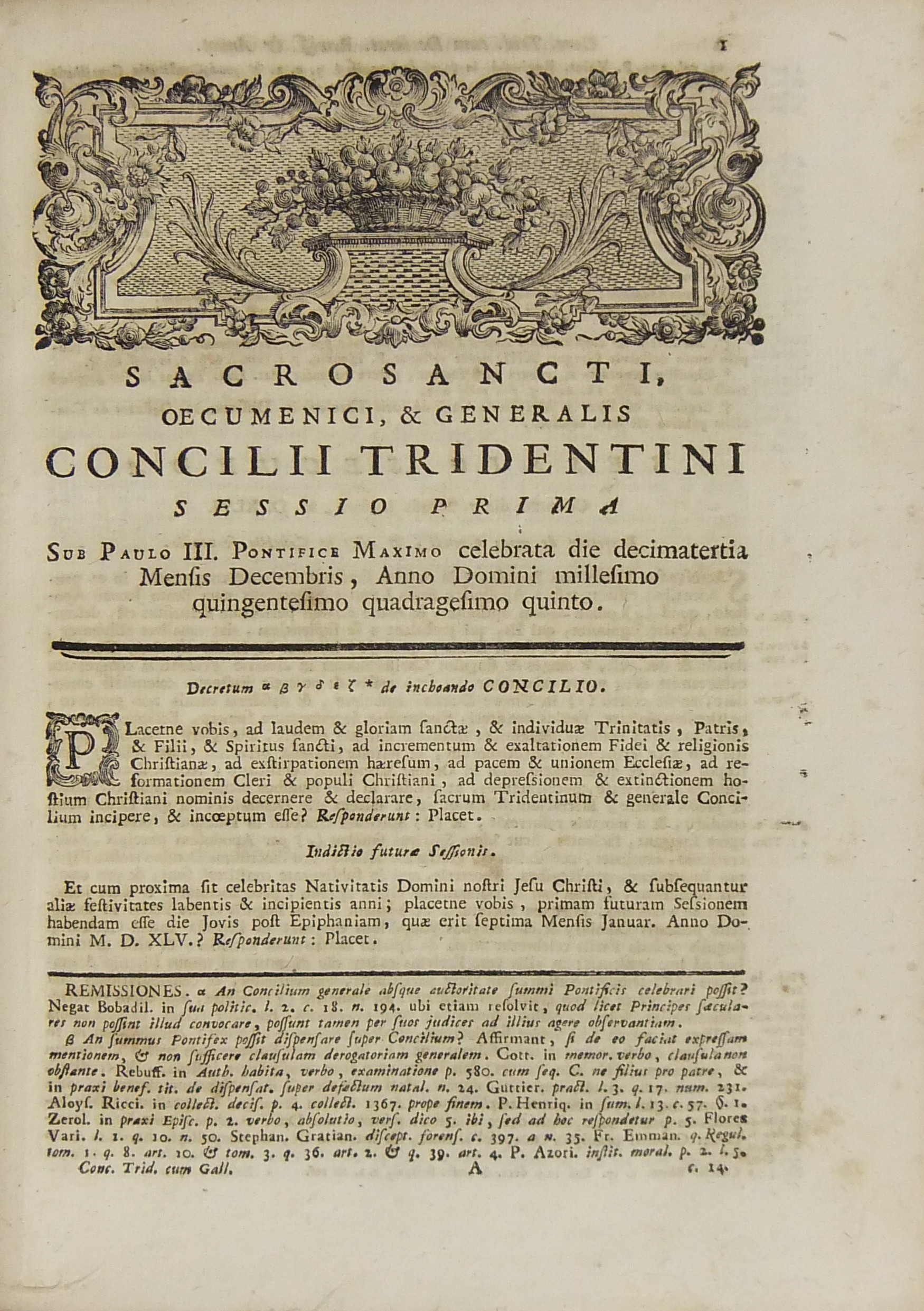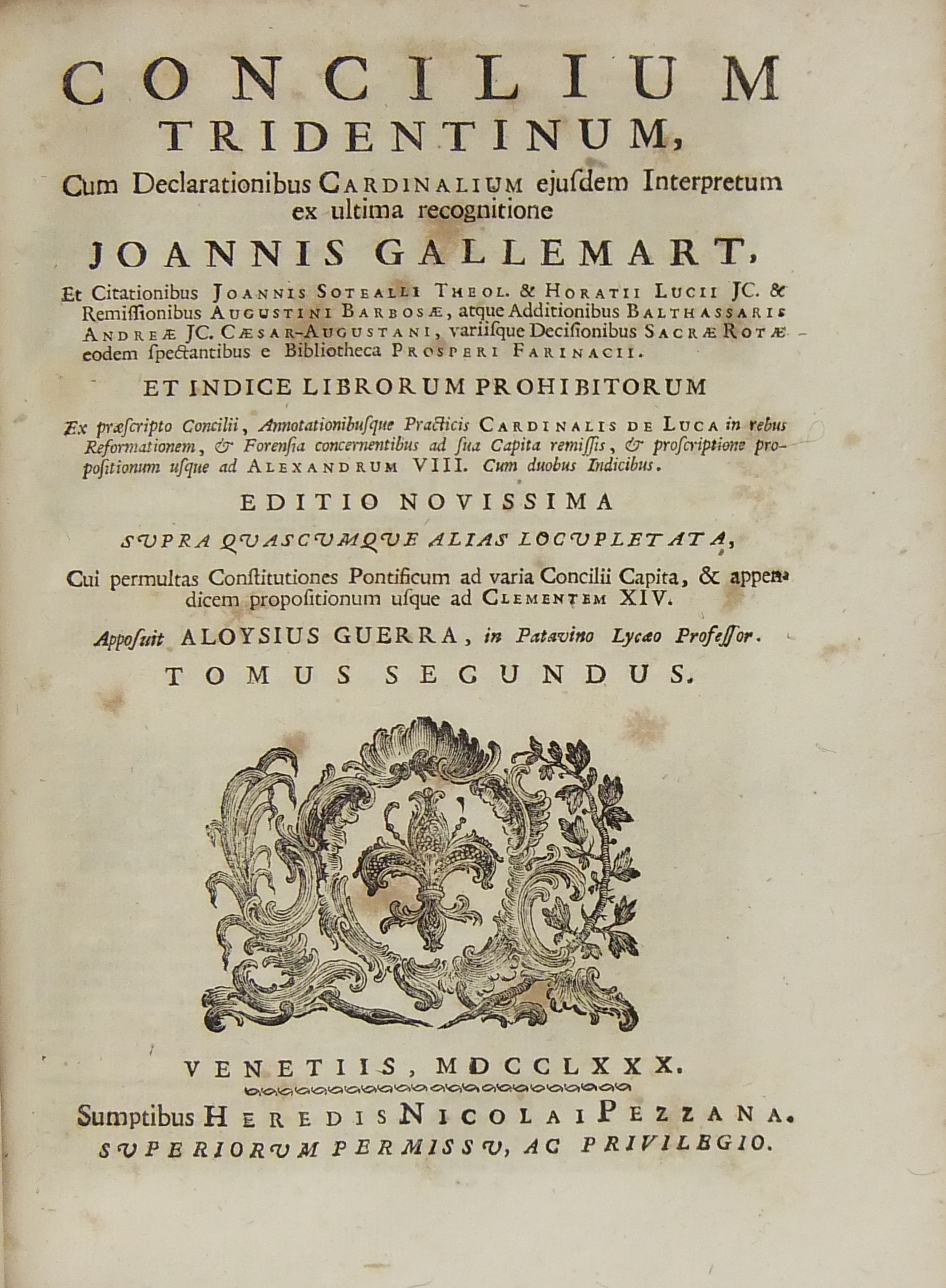Concilium Tridentinum, cum declarationibus Cardinalium eiusdem interpretum ex ultima recognitione Joannis Gallemart, et citationibus Joannis Sotealli theol. & Horatii Lucii JC. & remissionibus Augustini Barbosae, atque additionibus Balthassaris Andreae JC. Caesar-Augustani, variisque decisionibis Sacrae Rotae eodem spectantibus e Bibliotheca Prosperi Farinacii. Et indice librorum prohibitorum ...