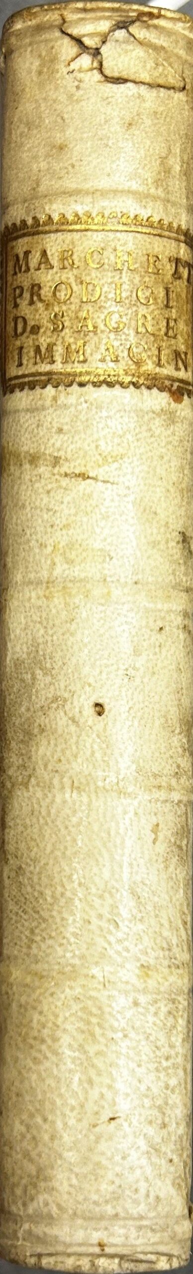 De' prodigj avvenuti in molte sagre immagini specialmente di Maria Santissima Secondo gli autentici Processi compilati in Roma. Memorie Estratte e Ragionate da D.Gio. Marchetti Esaminatore Apostolico del Clero e Presidente del Gesù. Con breve ragguaglio di altri simili Prodigj comprovati nelle Curie Vescovili dello Stato Pontificio.