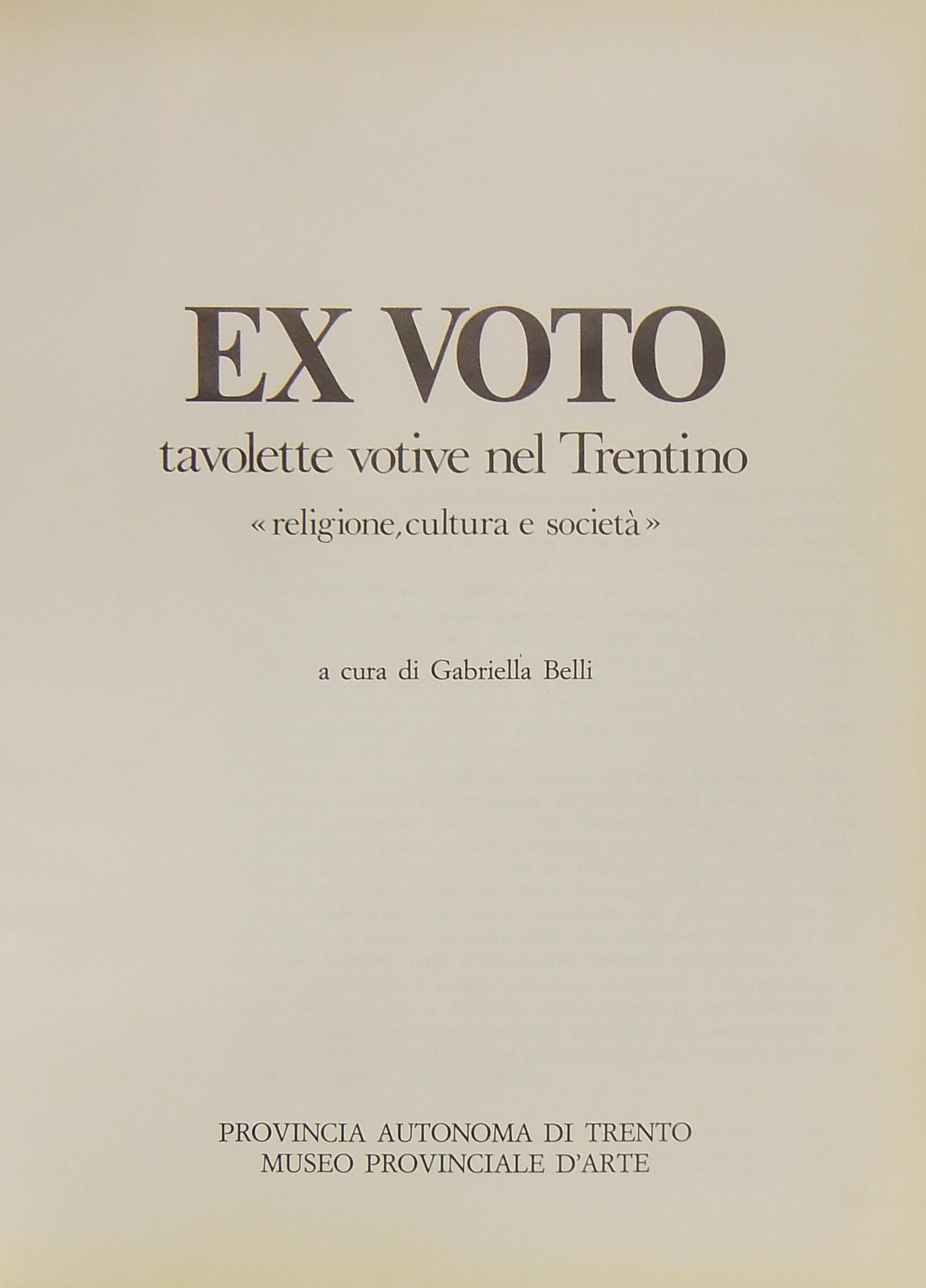 Ex voto. Tavolette votive nel Trentino religione cultura e societÃ