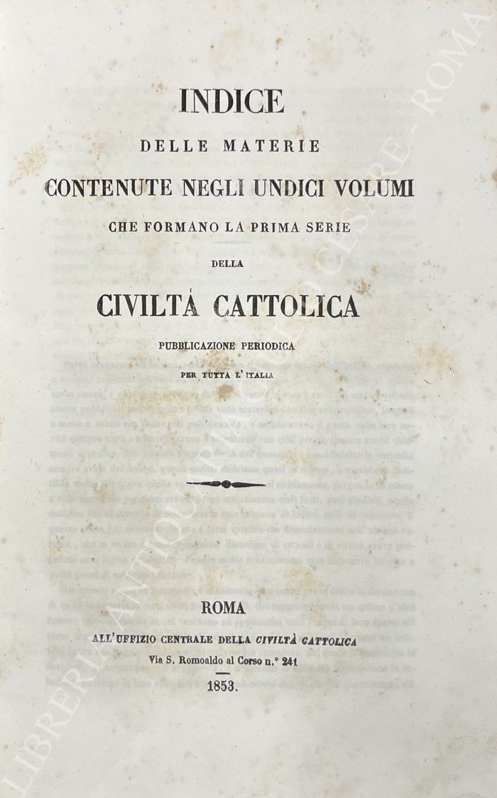 Indice delle materie contenute negli undici volumi che formano la prima serie della civiltà cattolica. Vol. XII
