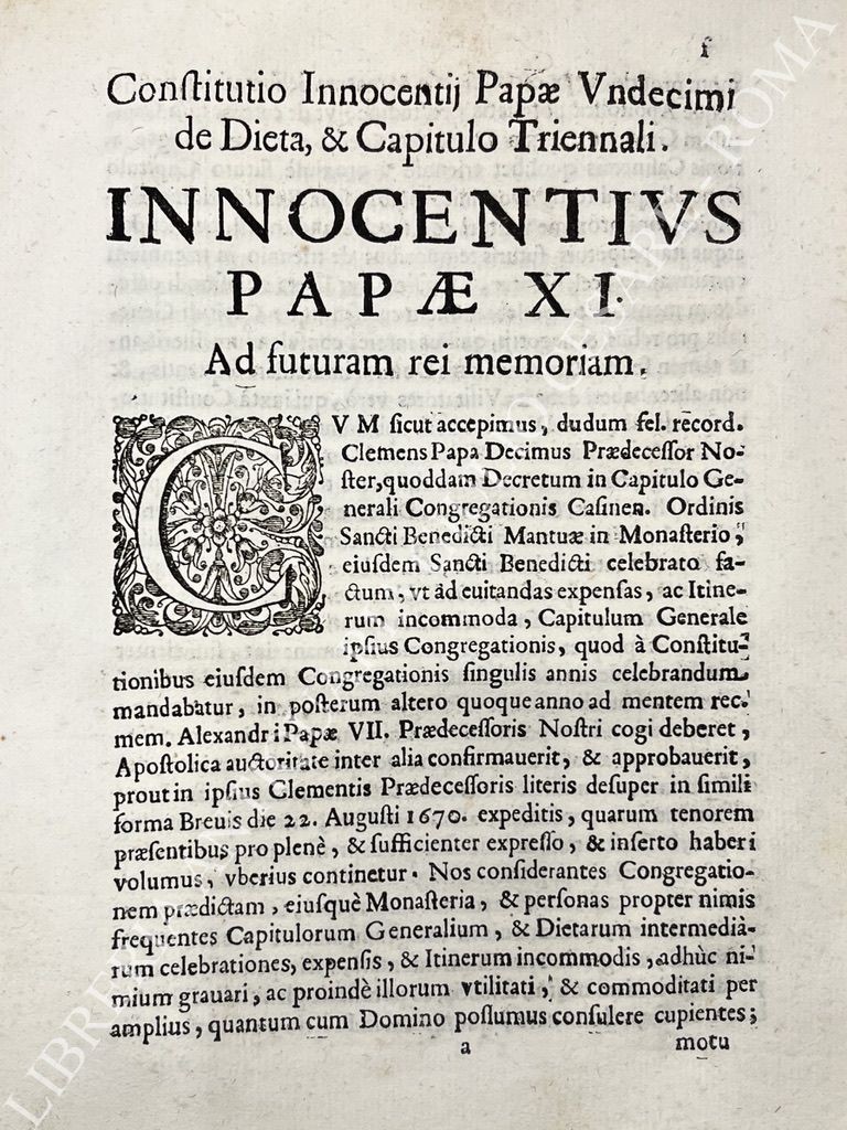 Regula Sancti Benedicti Abbatis Monarchorum Patriarcae. Cum declarationibus, & Constitutionibus Patrum Congregationis à Sanctis D.N.D. Innocentio Papa XI. Anno Domini MLLXXX