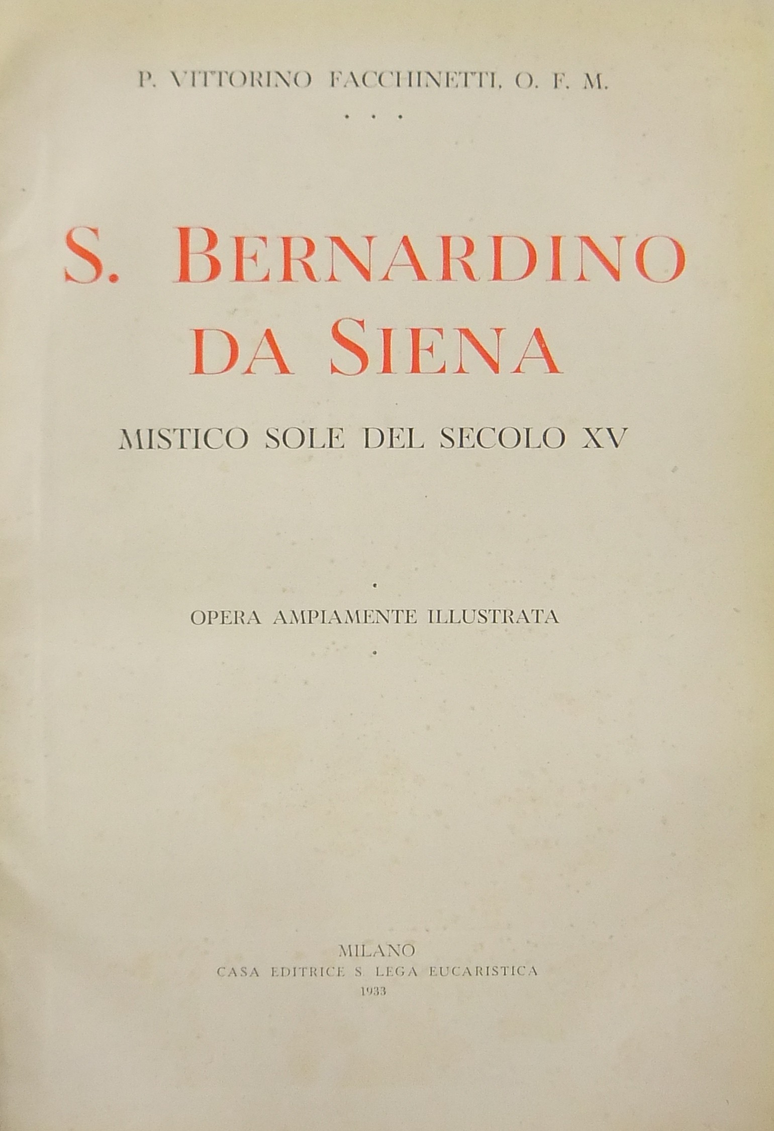 S. Bernardino da Siena. Mistico Sole del secolo XV. Opera ampiamente illustrata