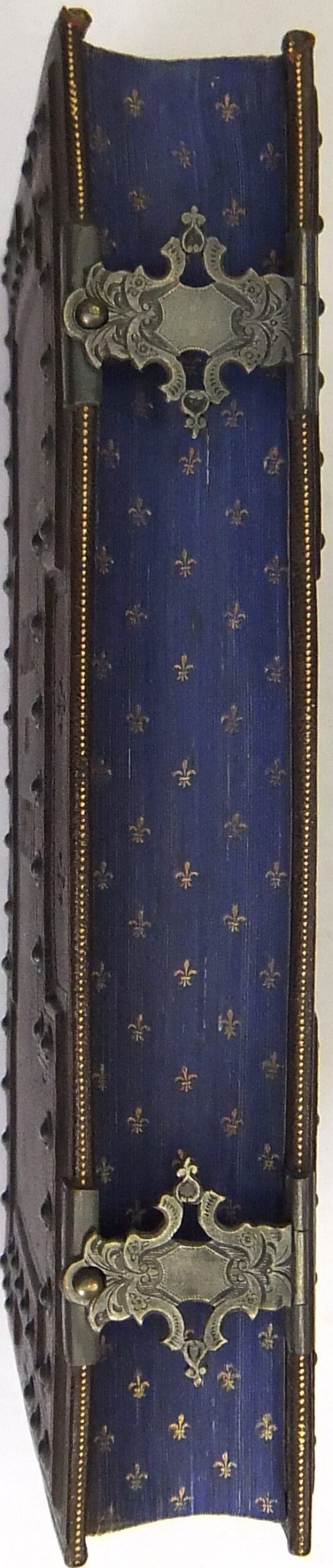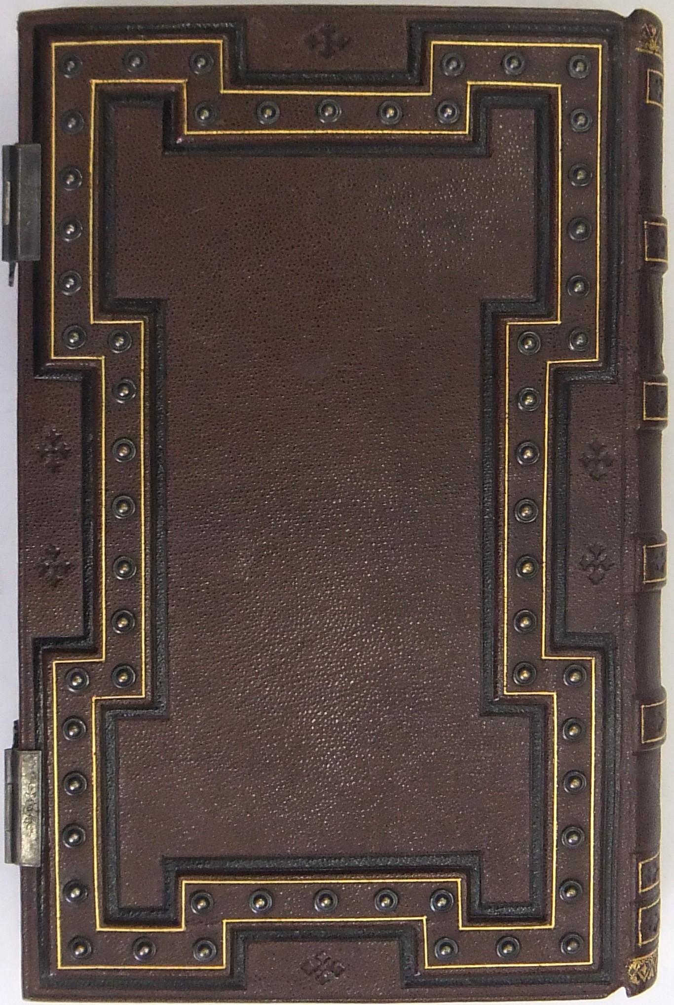 Rilegatura: splendida e lussuosa legatura in p.pelle coeva con chiusure metalliche, borchie, fregi oro e a secco sul dorso, piatti e unghie (con custodia in cartone leggermente sciupata)