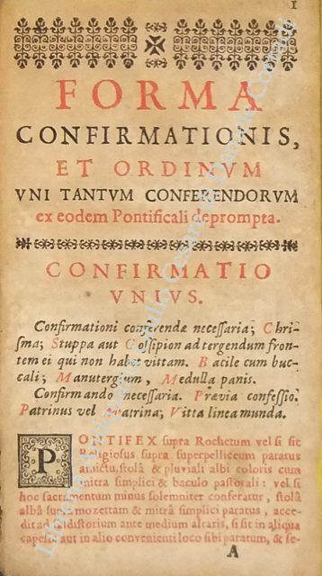 Pontificale romanum Clementis VIII primum; nunc denuo Urbani VIII. Auctoritate recognitum, ac demun ad plurium usum, in commodiorem formam redactum