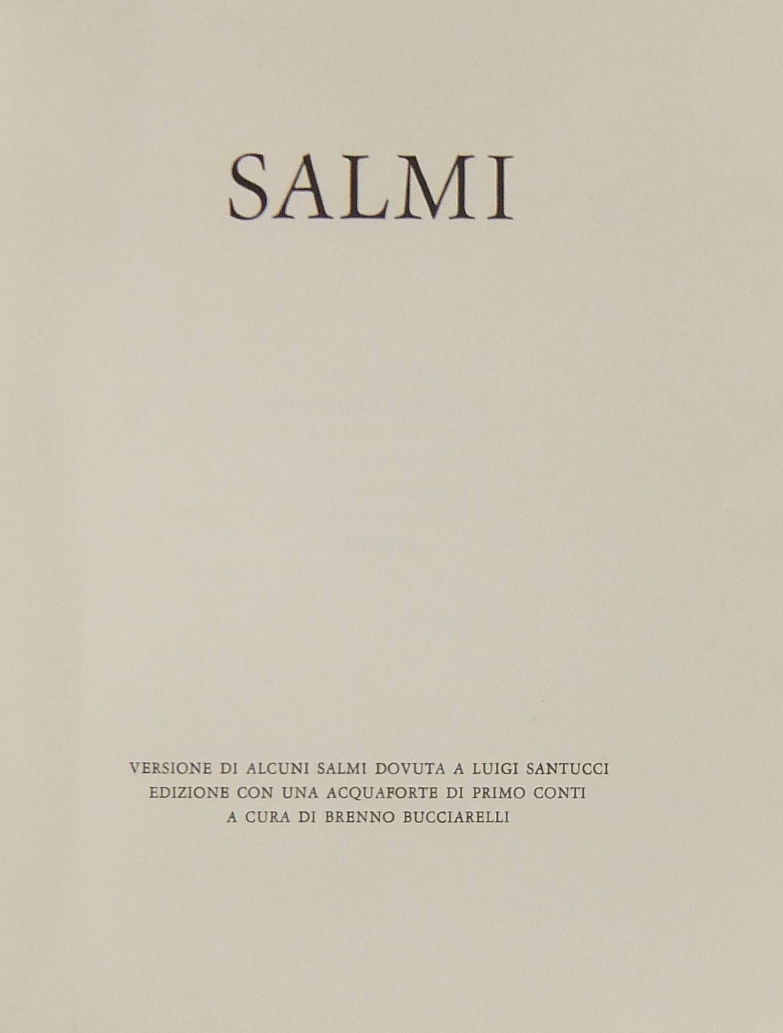 Salmi. Versione di alcuni Salmi dovuta a Luigi Santucci. Edizione con un'acquaforte di Primo Conti. A cura di Brenno Bucciarelli