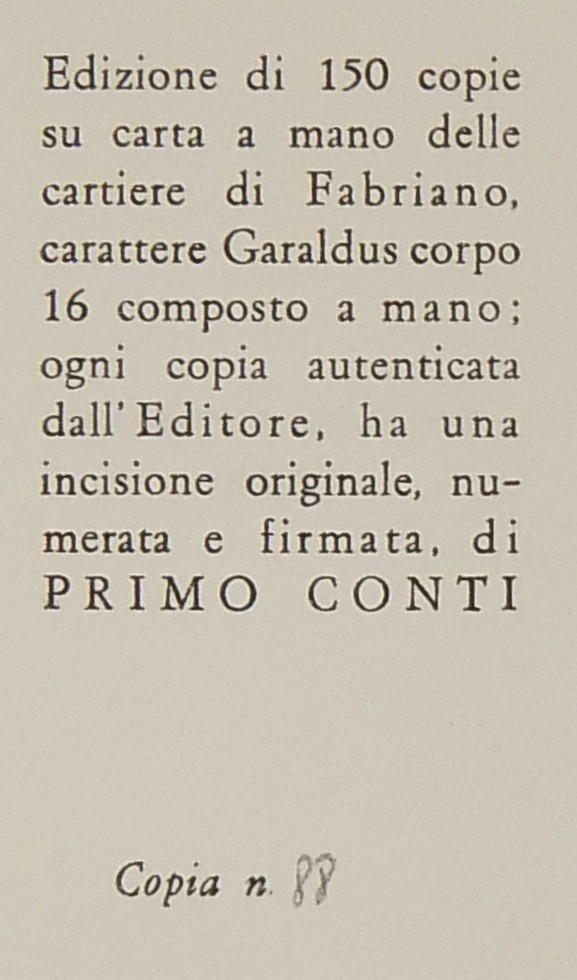Con un acquaforte di Primo Conti numerata e firmata