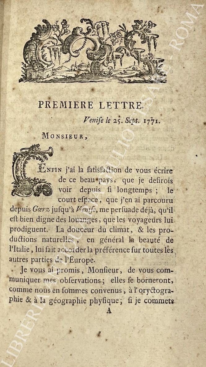 Lettres sur la mineralogie de l'Italie, et sur divers autres objets de l'histoire naturelle de l'Italie, Ecrites par M. Ferber à M. le Chev. de Born. Ouvrage traduit de l'allemand, enrichi de notes & d'observations faites sur les lieux