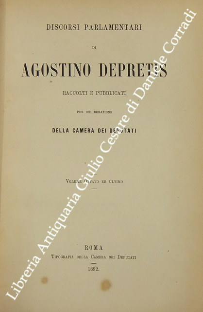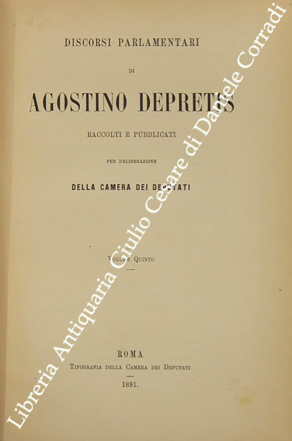 Discorsi parlamentari di Agostino Depretis pubblicati per deliberazione della Camera dei Deputati