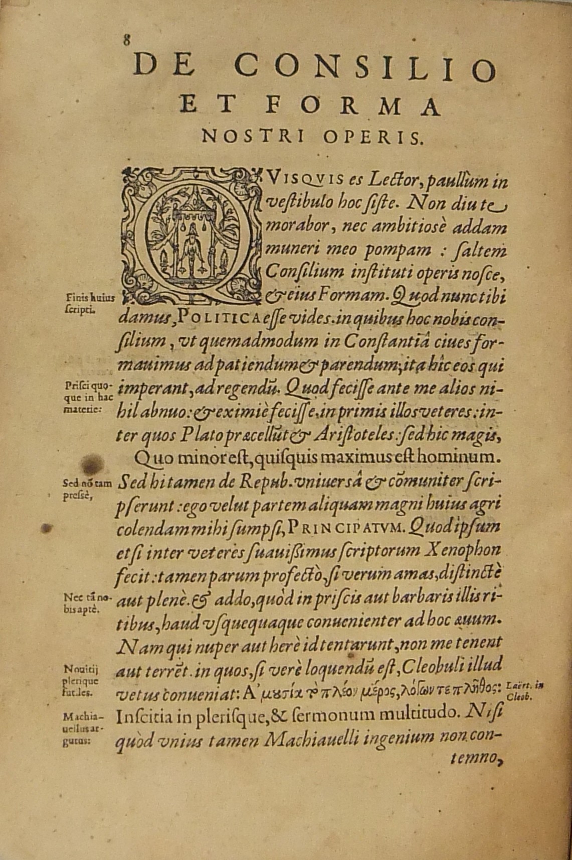 Le Notae e il De una religione seguono i Politicorum libri ognuna con un proprio frontespizio. Belle marche tipografiche finalini capilettera ornati.