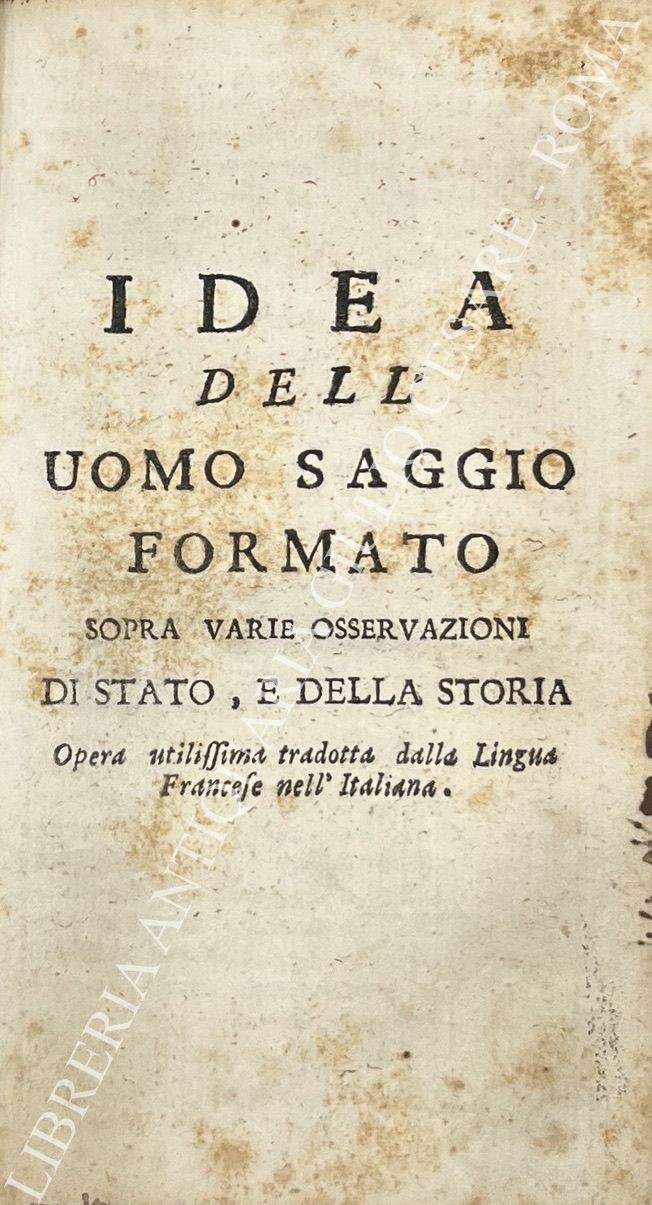 Massime principali con le quali si deve governare l'uomo d'onore. Agiuntavi l'idea dell'uomo saggio. Il tutto tradotto dal francese nella lingua italiana. UNITO A: Idea dell'uomo saggio formato sopra varie osservazioni di Stato e della Storia