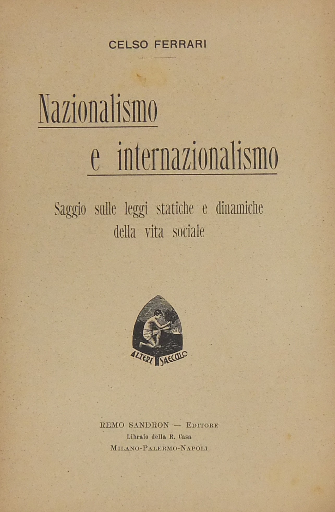 Nazionalismo e Internazionalismo. Saggio sulle leggi statiche e dinamiche della vita sociale