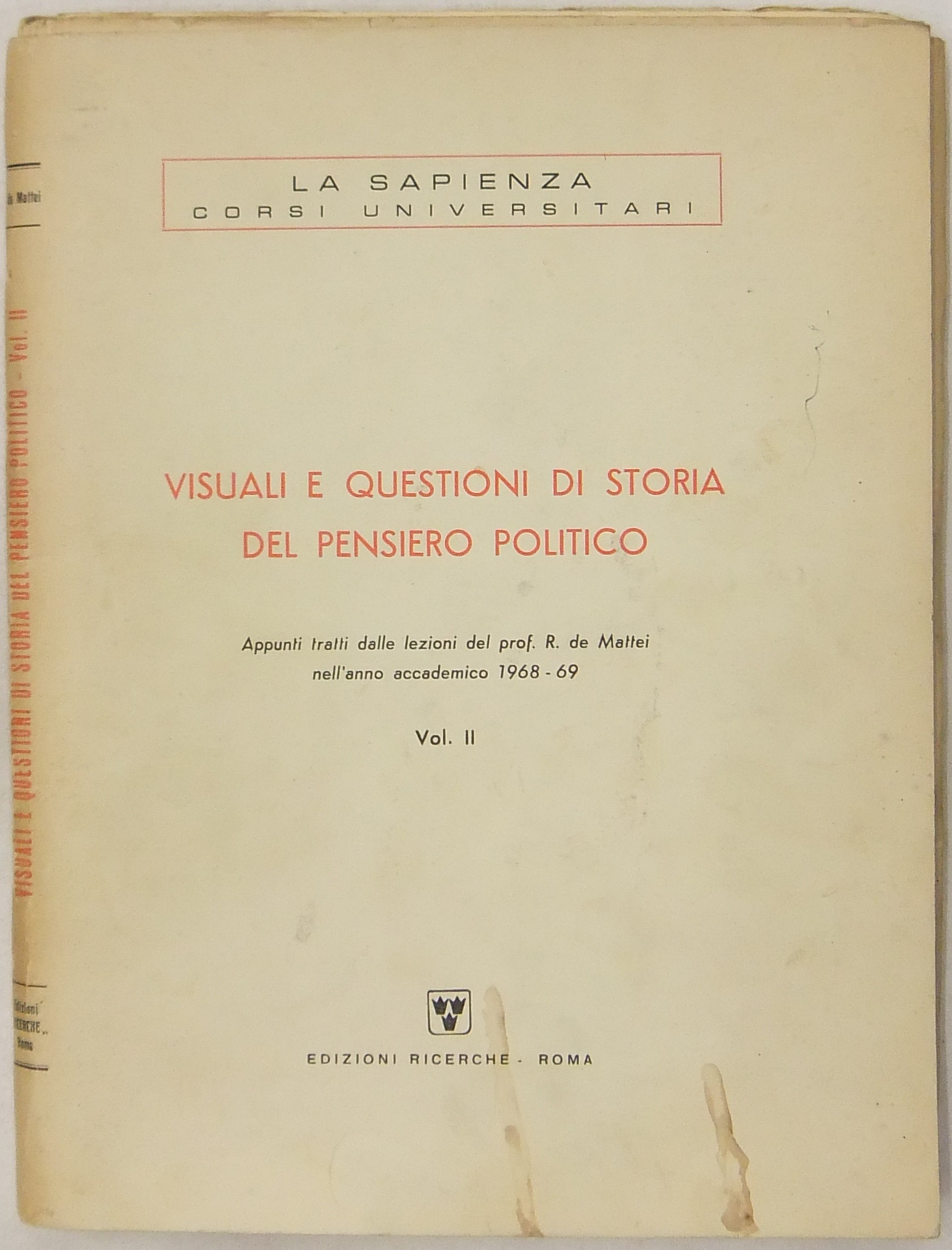 Visuali e questioni di storia del pensiero politico. Appunti tratti dalle lezioni del Prof. R. de Mattei nell'anno accademico 1968-69