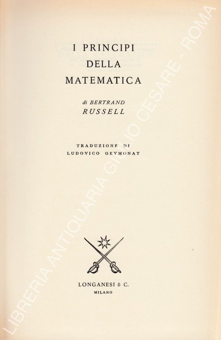 I principi della matematica. Traduzione di Ludovico Geymonat