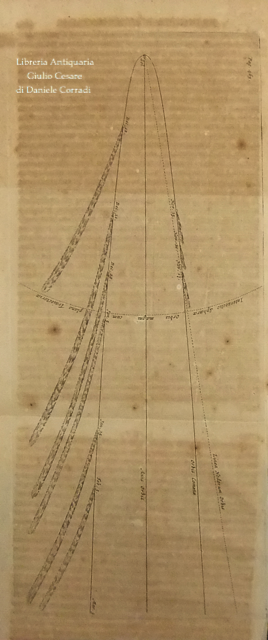 L’Autore in quest’opera suddivisa in tre libri (nei primi due espone il moto dei corpi e dei mezzi di contrasto quali aria e acqua e nel terzo descrisse la legge di gravitazione universale) stabilì i fondamenti per la meccanica classica. Nei Principia Newton compie l’unificazione tra la fisica galileiana e l’astronomia di Keplero. Marca calcografica della Compagnie des Libraires di Amsterdam sul frontespizio (Due mani uscenti da nuvole strette davanti a fascio littorio che regge una bilancia con due putti seduti su casse ai lati. In basso cornucopie. In alto motto in cartiglio che cita: “Vis Unita Major”. Tavola grande ripiegata raffigurante l’orbita della cometa, che secondo la tesi di Newton poteva essere non solo ellittica, ma anche iperbolica e parabolica. Alle prime carte dedica a Carlo II, a seguire un poemetto di E.D. Halley a Newton e due prefazioni di Newton, datate “Maii 8, 1686” e “Mar. 28, 1713”; poi la prefazione editoriale curata da Rogerus Cotes (Roger Cotes, professore di astronomia e filosofia sperimentale del Trinity College), datata “Cantabrigiae Maii 12, 1713” e infine lo “Index Capitum totius operis”.