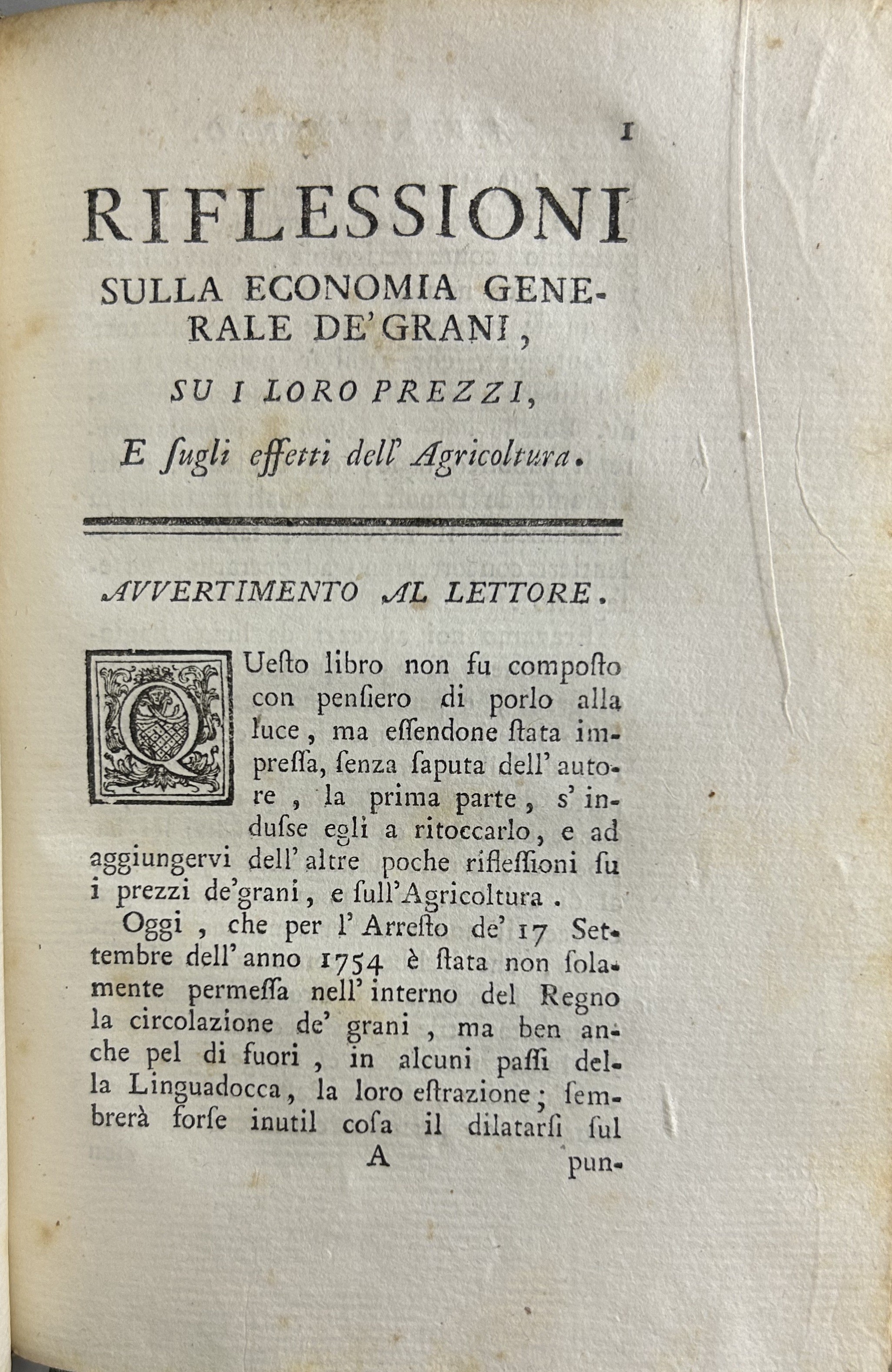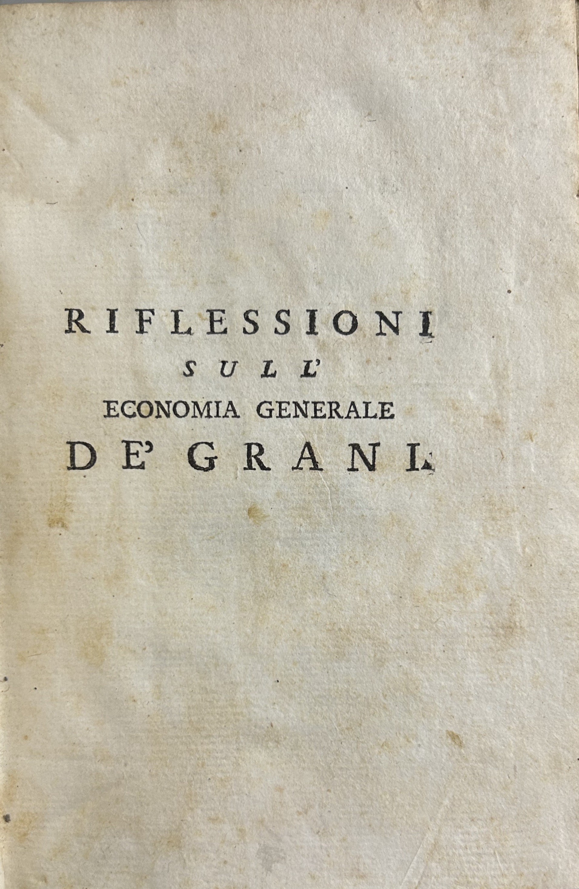 Riflessioni sull'economia generale de' grani tradotte dal francese, con un discorso preliminare del signor abbate Genovesi catedratico di commercio