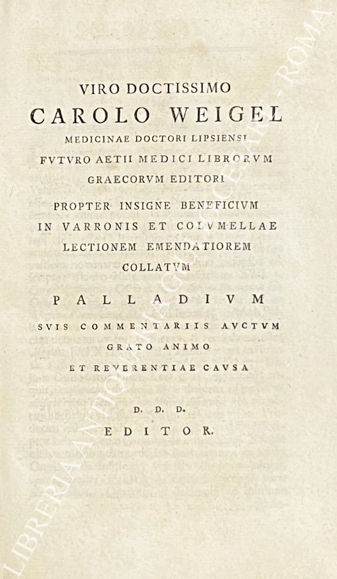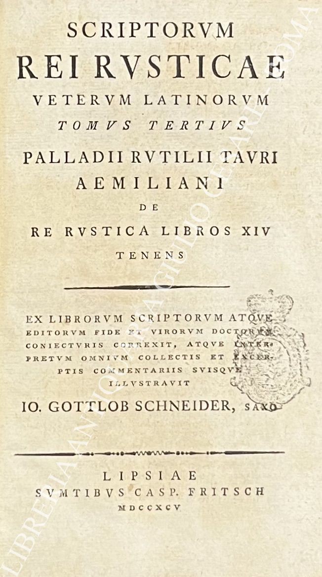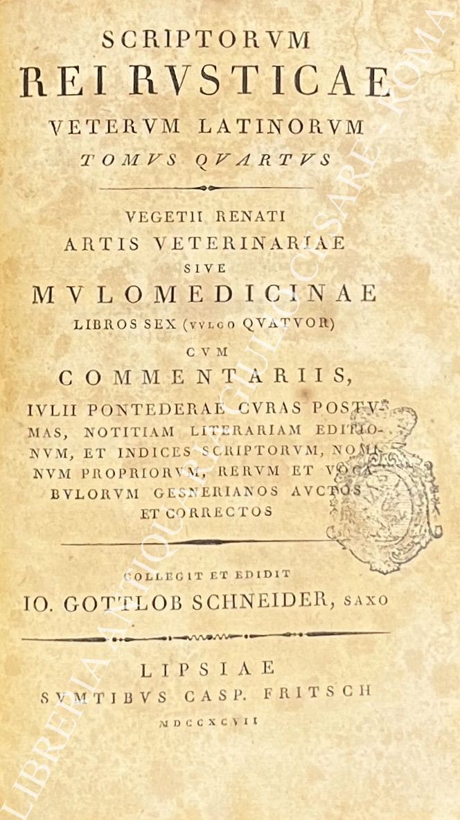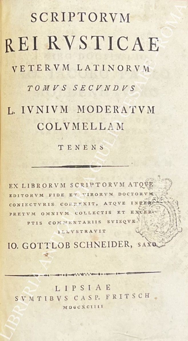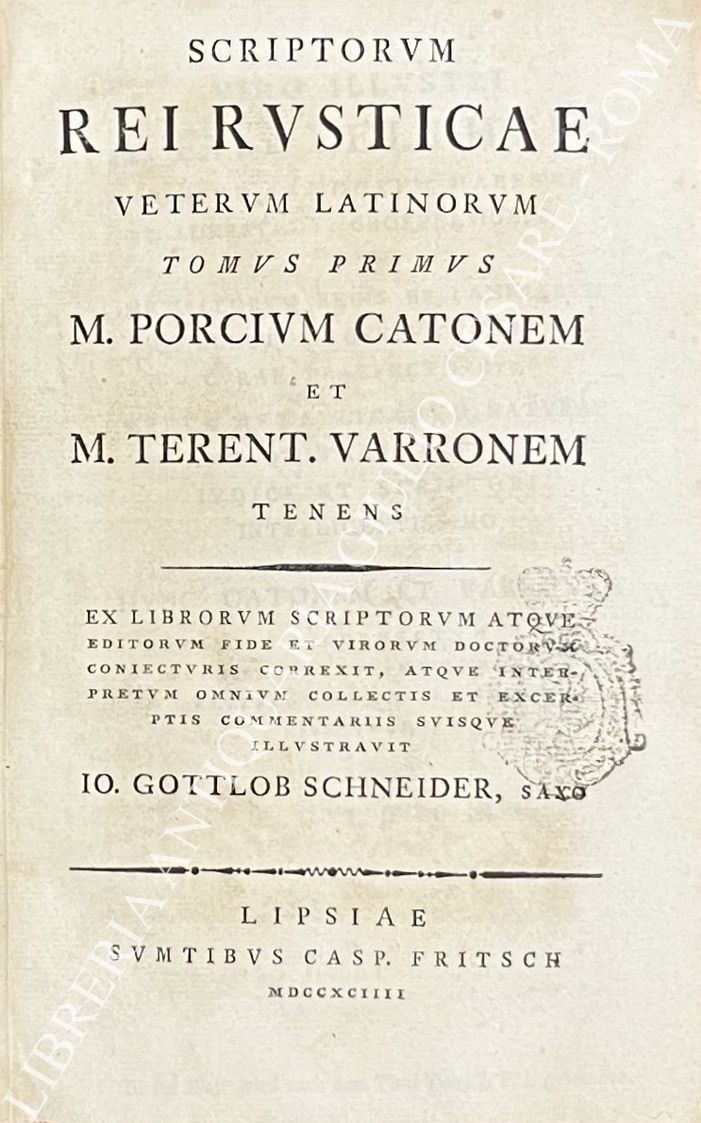 Scriptorum rei rusticae veterum latinorum. Vol. I - M. Porcium Catonem et M. Terent. Varronem tenens; Vol. II - L. Iunium Moderatum Columellan tenens; Vol. III - Palladii Rutilii Tauri Aemiliani de rustica libros XIV tenens; Vol. IV - Vegetii Renati Artis Veterinariae sive Mulomedicinae