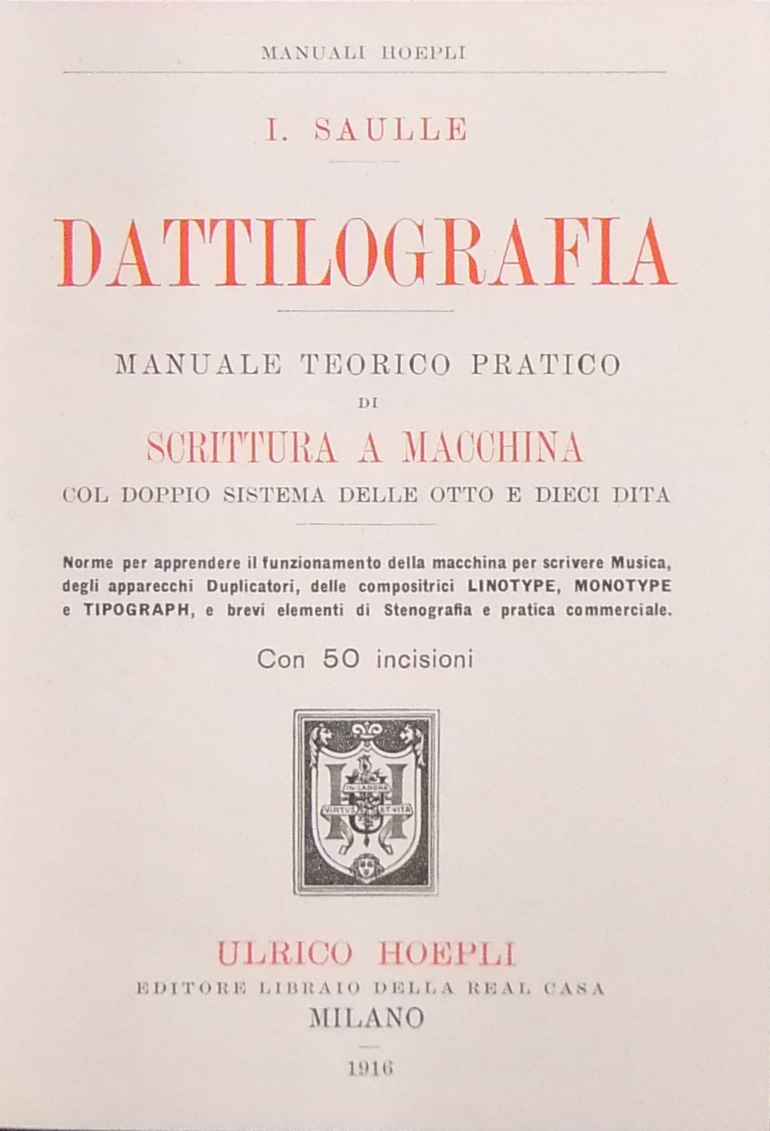 Dattilografia. Manuale teorico pratico di scrittura a macchina col doppio sistema delle otto e dieci dita. Con 50 incisioni