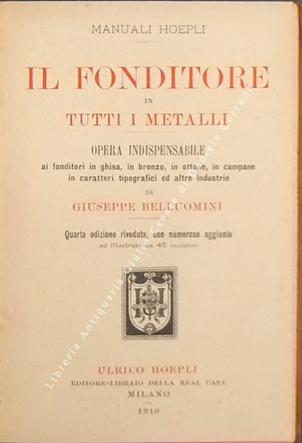Il fonditore in tutti i metalli. Opera indispensabile ai fonditori in ghisa, in bronzo, in campane in caratteri tipografici ed altre industrie. Con 45 incisioni