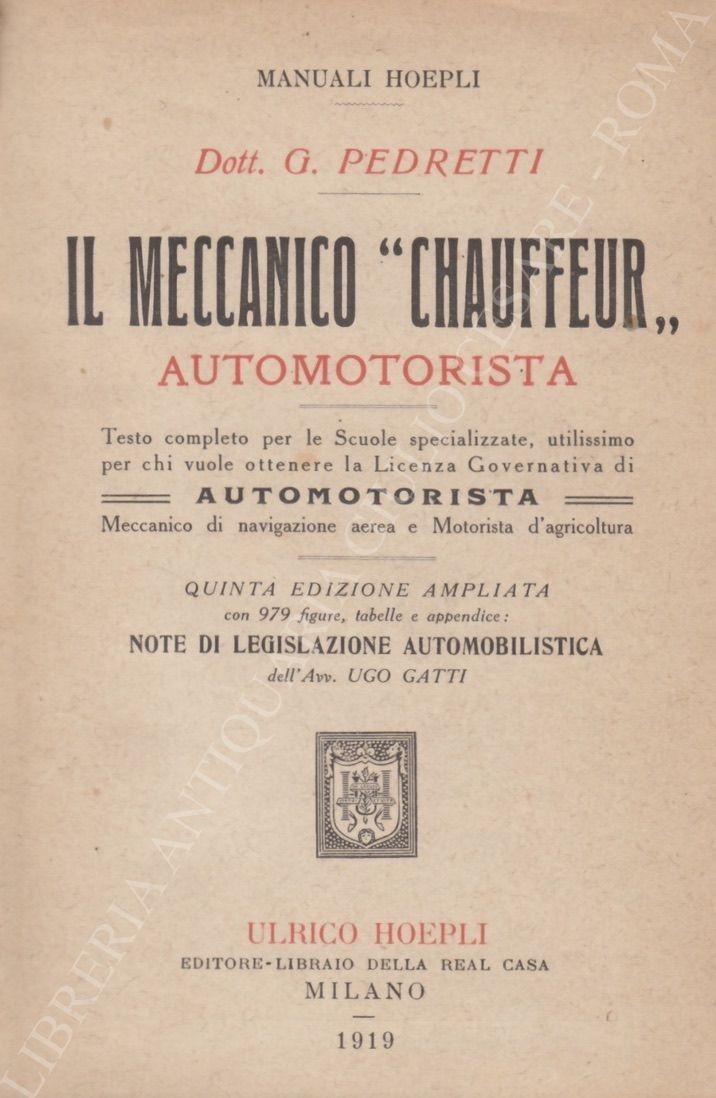Testo completo per le Scuole specializzate, utilissimo per chi vuole ottenere la Licenza Governativa di Automotorista, Meccanico di navigazione aerea e Motorista d’agricoltura. Con note di legislazione automobilistica dell’Avv. Ugo Gatti