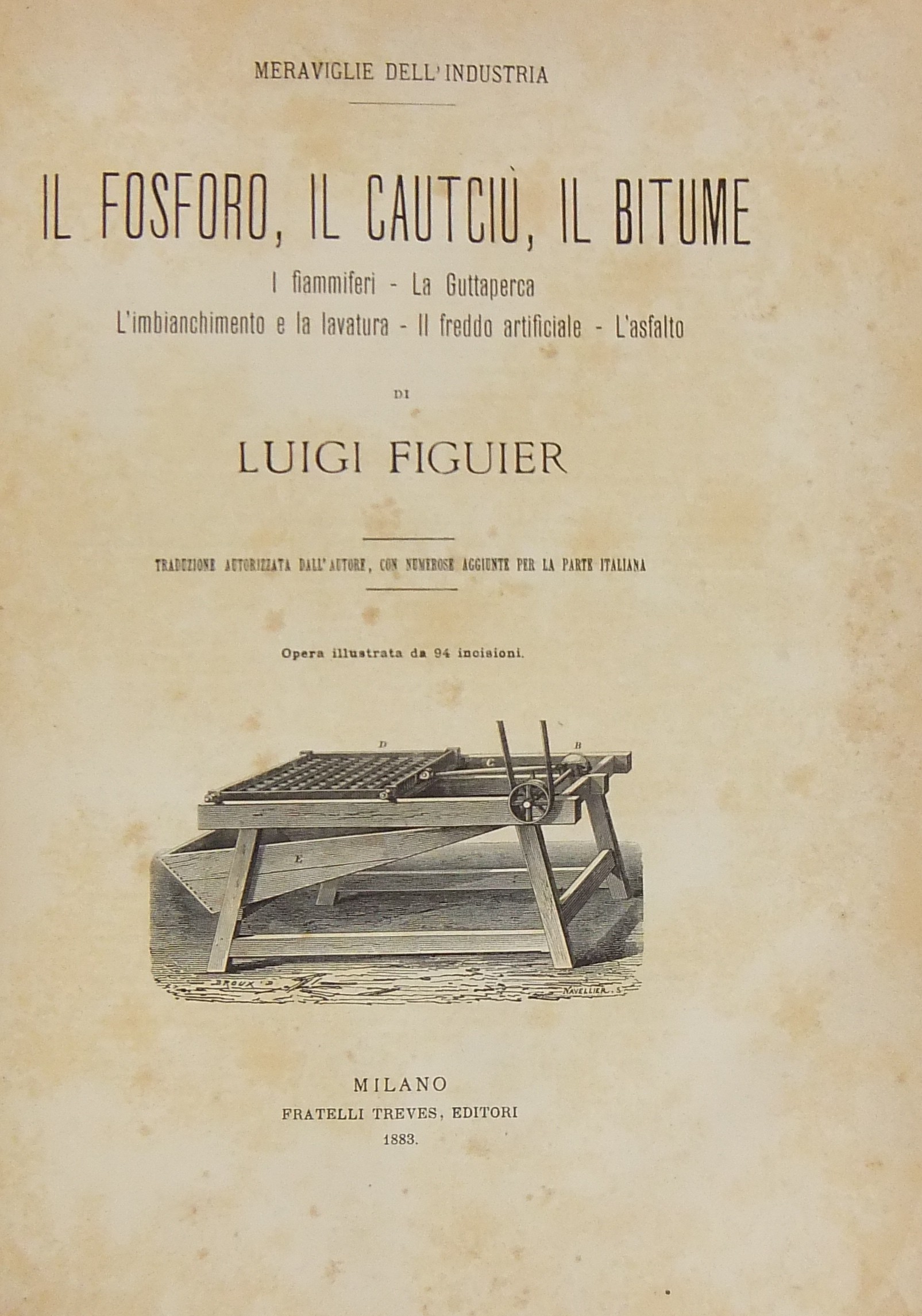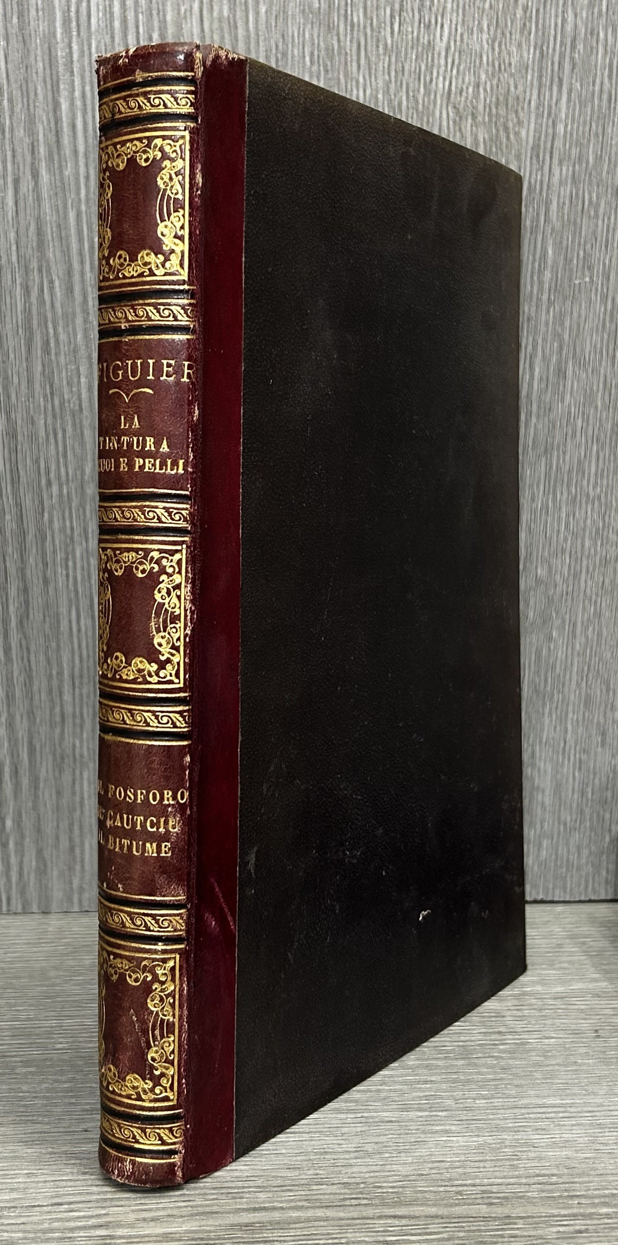 La tintura i cuoi e le pelli.. Traduzione autorizzata dall'Autore con numerose aggiunte per la parte italiana. Opera illustrata da 158 incisioni. UNITO A: Il fosforo il cautciù il bitume. I fiammiferi. La Guttaperca. L'imbianchimento e la lavatura. Il freddo artificiale. L'asfalto.. Traduzione autorizzata dall'Autore con numerose aggiunte per la parte italiana. Opera illustrata da 94 incisioni