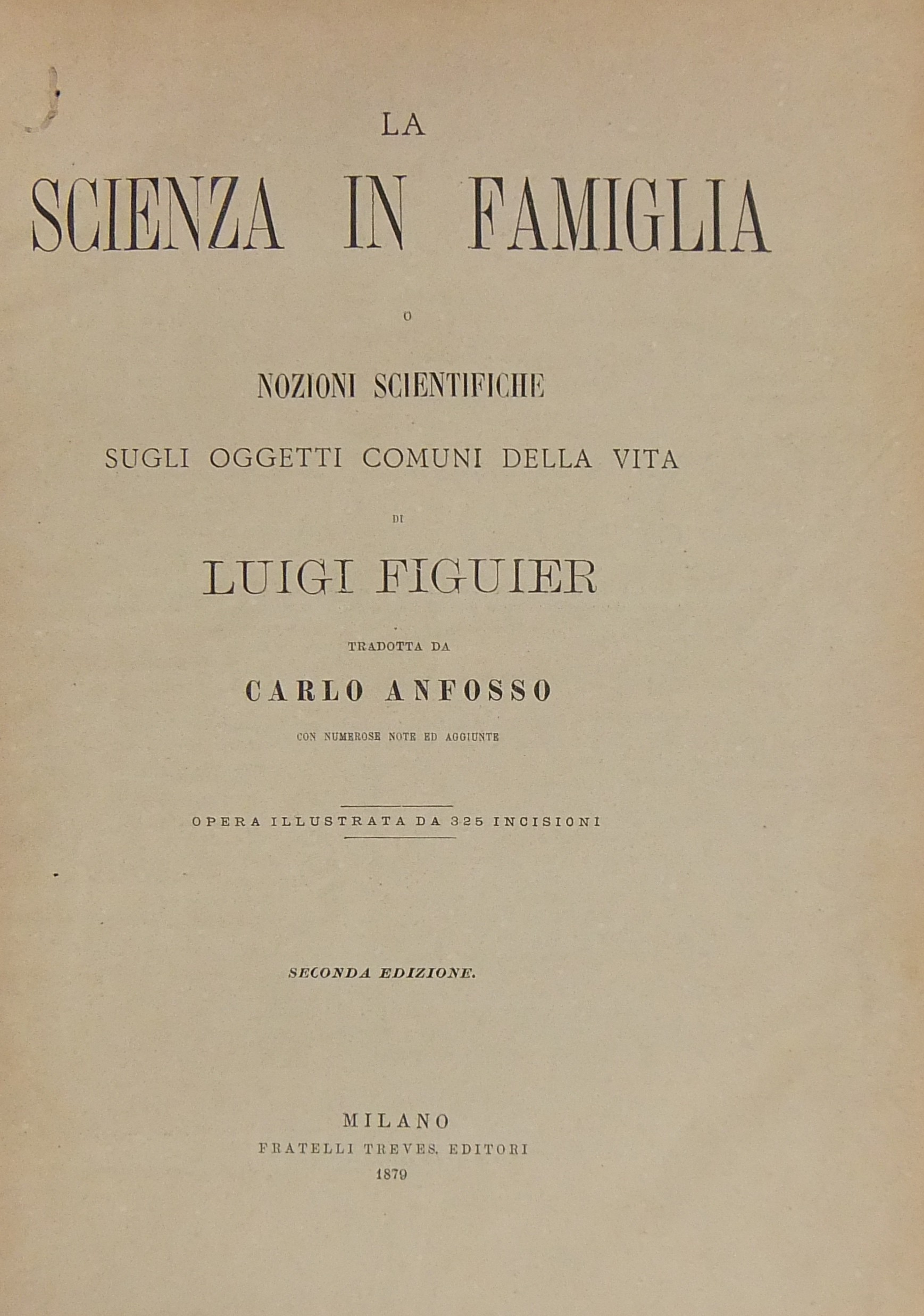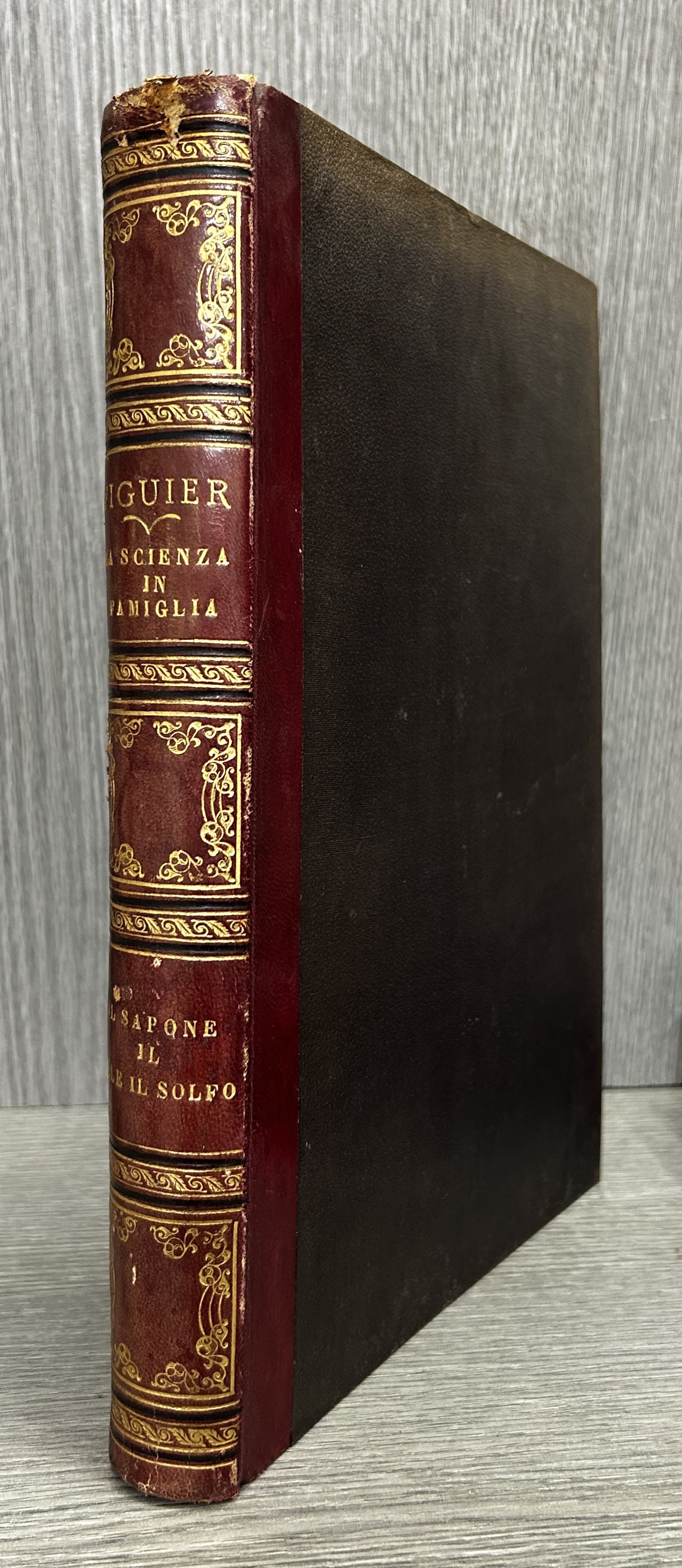 La scienza in famiglia o nozioni scientifiche sugli oggetti comuni della vita di Luigi Figuier. Tradotta da Carlo Anfosso con numerose note ed aggiunte. Opera illustrata da 325 incisioni. UNITO A: Il sapone, il sale, il solfo. Le sode e le potasse. L'acido solforico.. Traduzione autorizzata dall'Autore con numerose aggiunte per la parte italiana con 146 incisioni