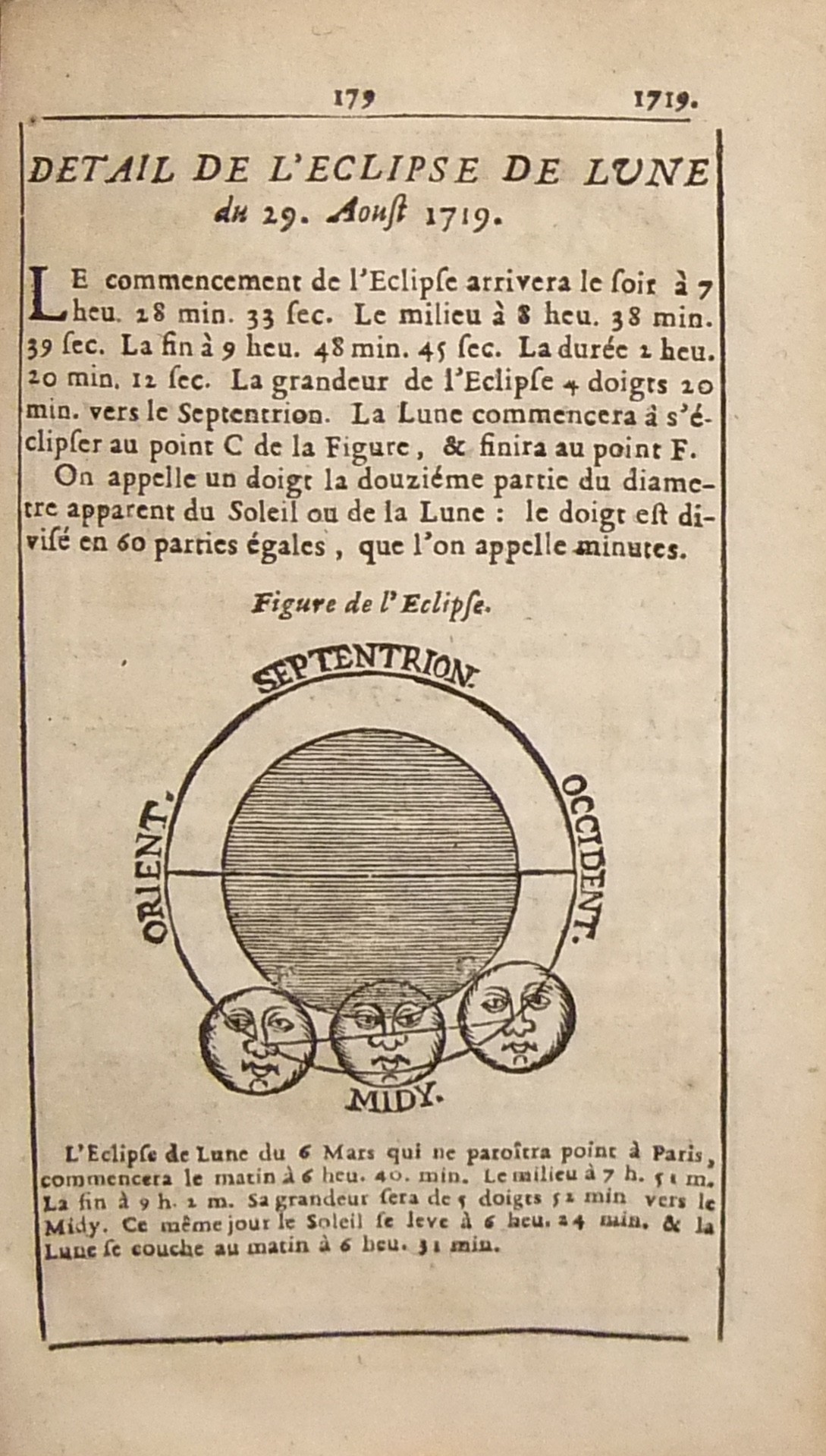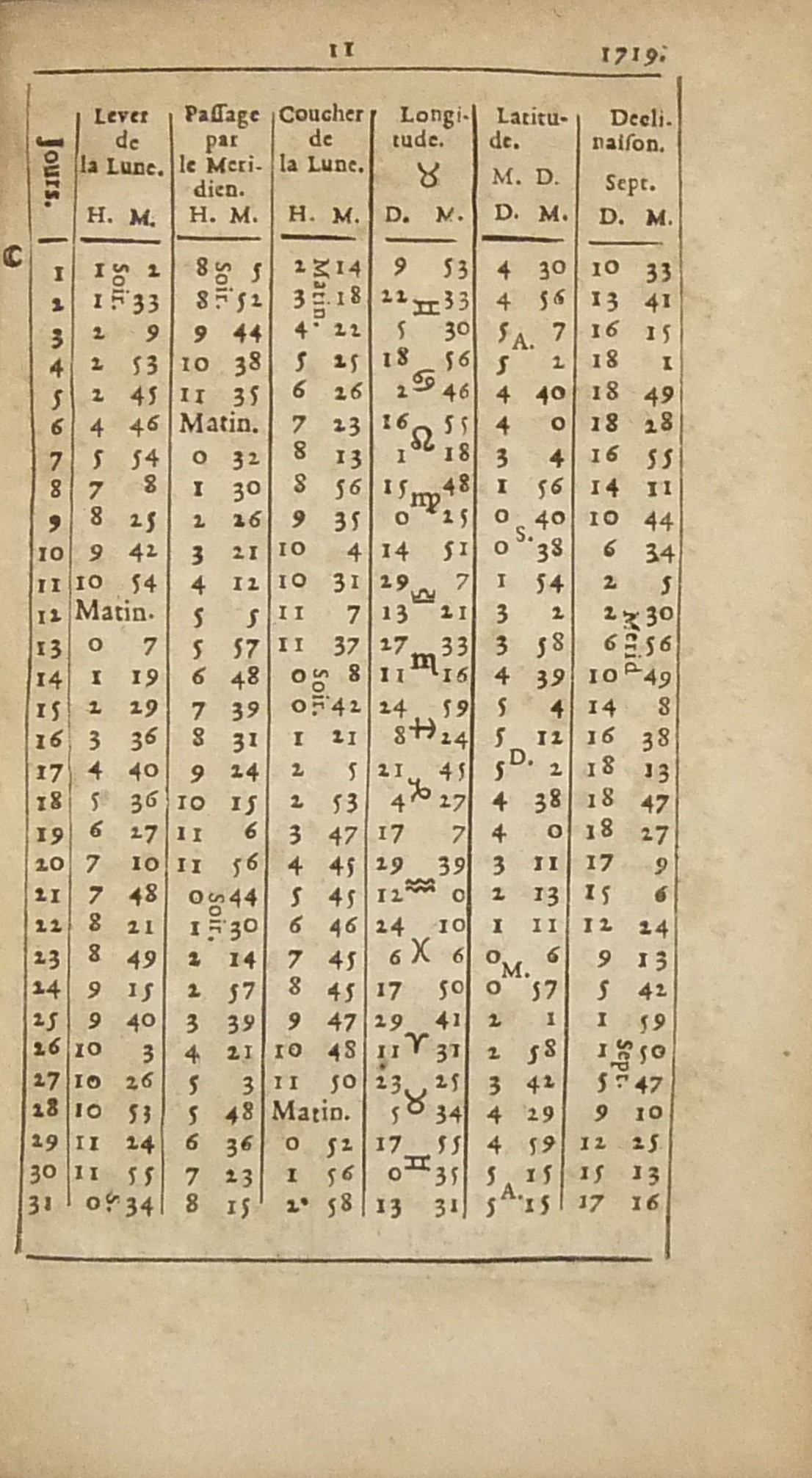 Connoissance des temps, pour l'Annee 1719 au meridien de Paris publiee par l'Ordre de l'Academie Roiale des Sciences, et calculee