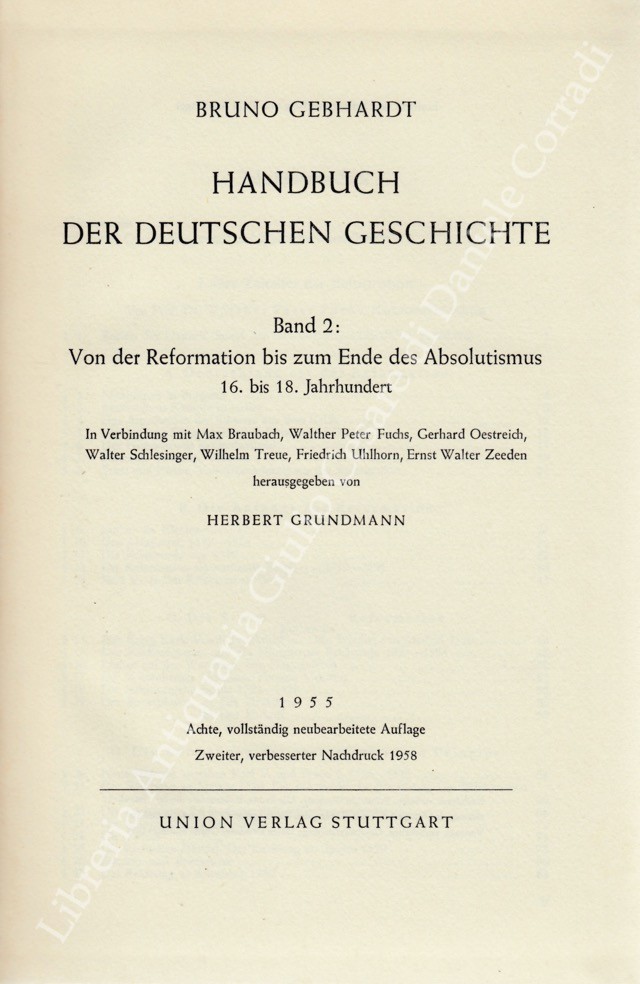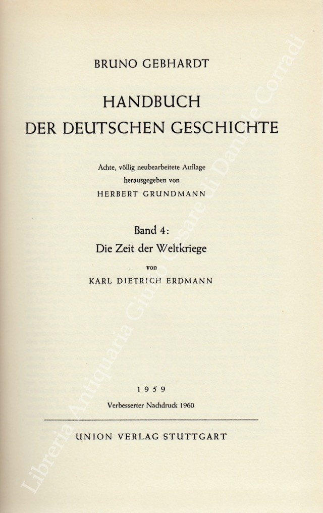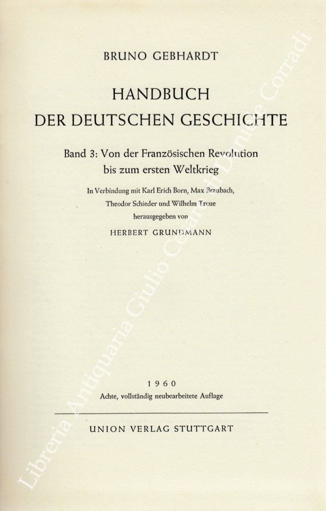 Handbuch der deutschen geschichte. Vol. I - Fruhzeit und Mittelalter; Vol. II - Von der Reformation bis zum Ende des Absolutismus; Vol. III - Von der Franzosischen Revolution bis zum ersten Weltkrieg; Vol. IV - Die Zeit der Weltkriege