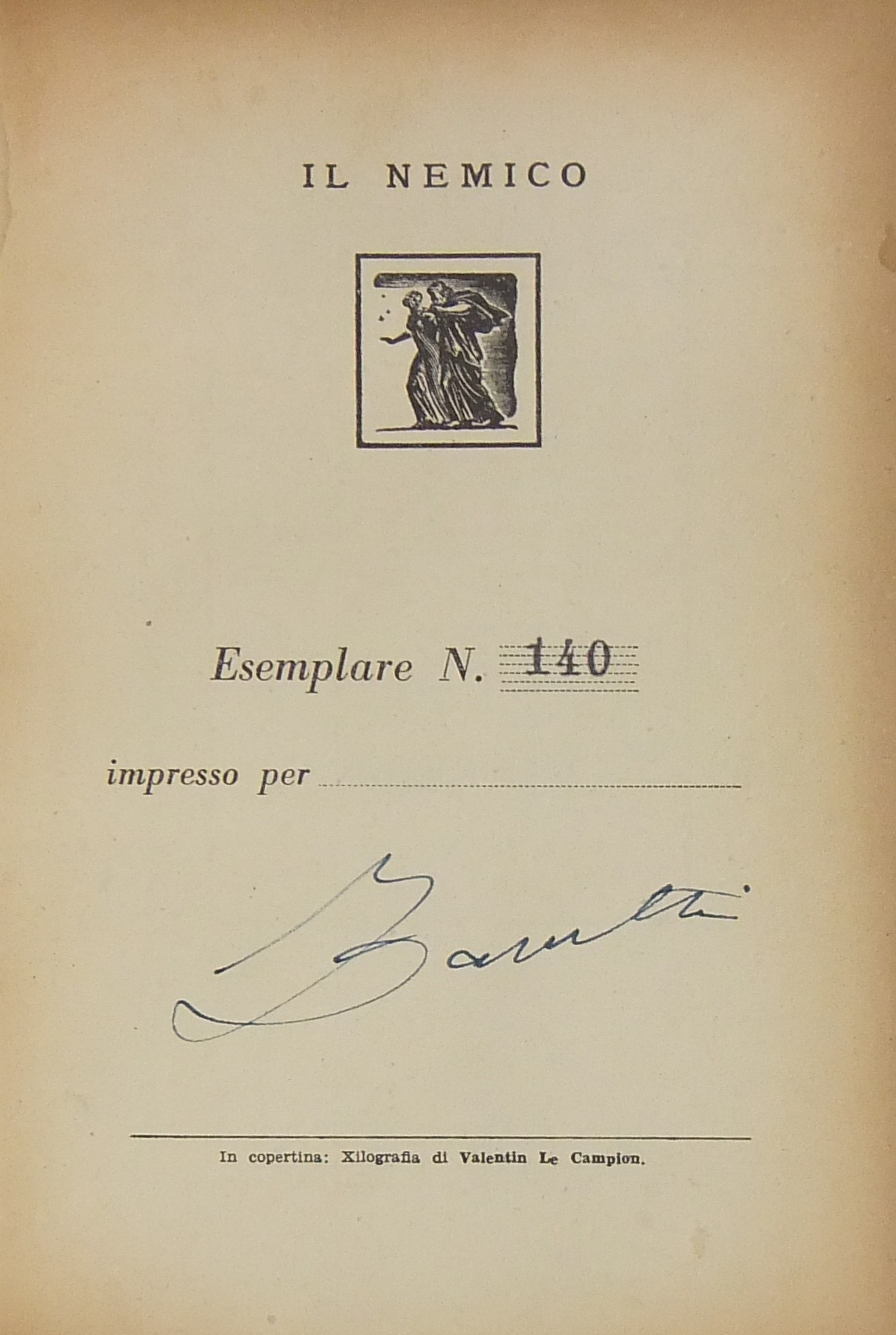 Esemplare N. 140 ad personam con firma dell'Autore