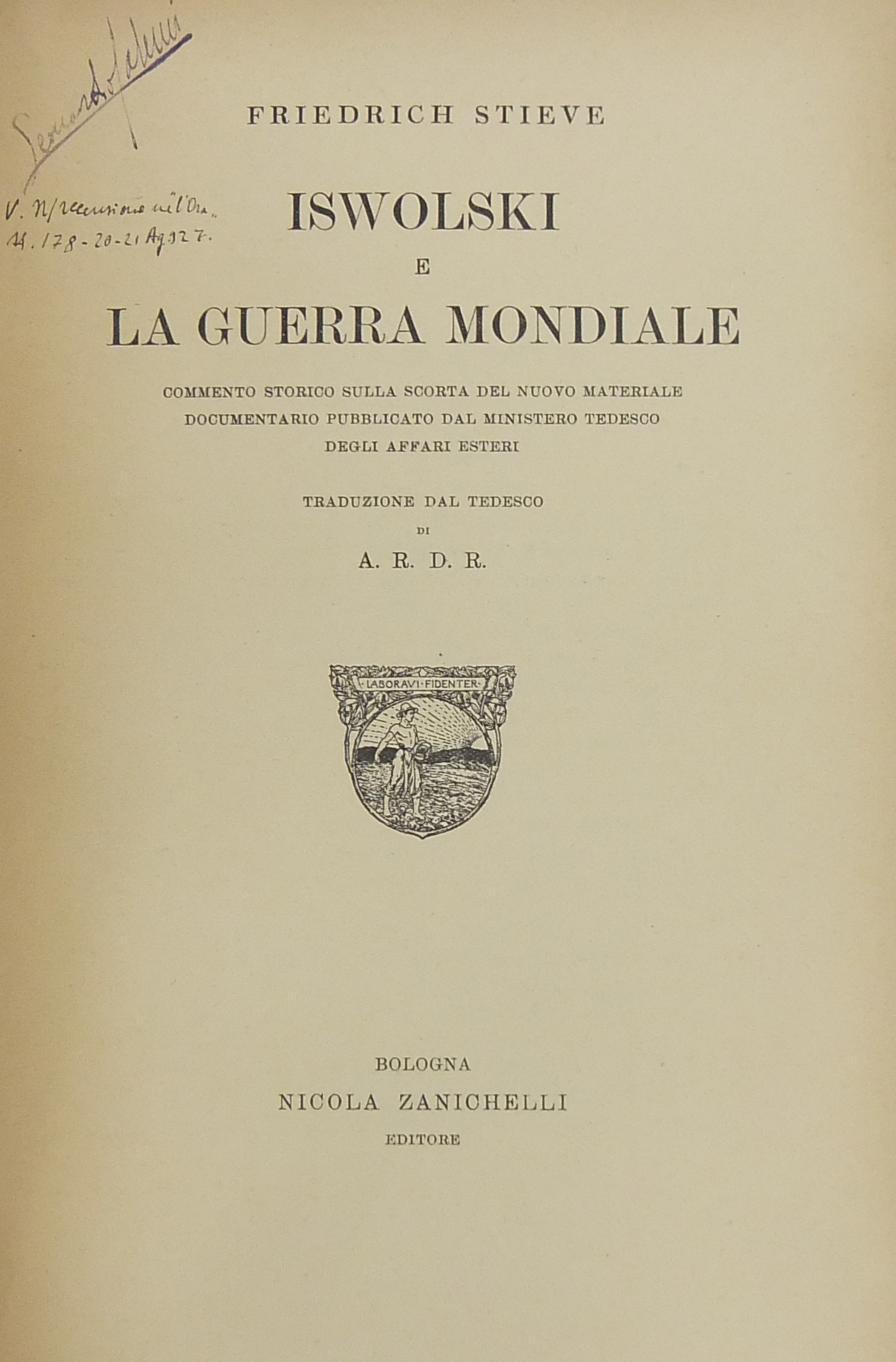 Iswolski e la guerra mondiale. Commento storico sulla scorta del nuovo materiale documentario pubblicato dal Ministero Tedesco degli Affari Esteri. Traduzione dal tedesco di A. R. D. R.