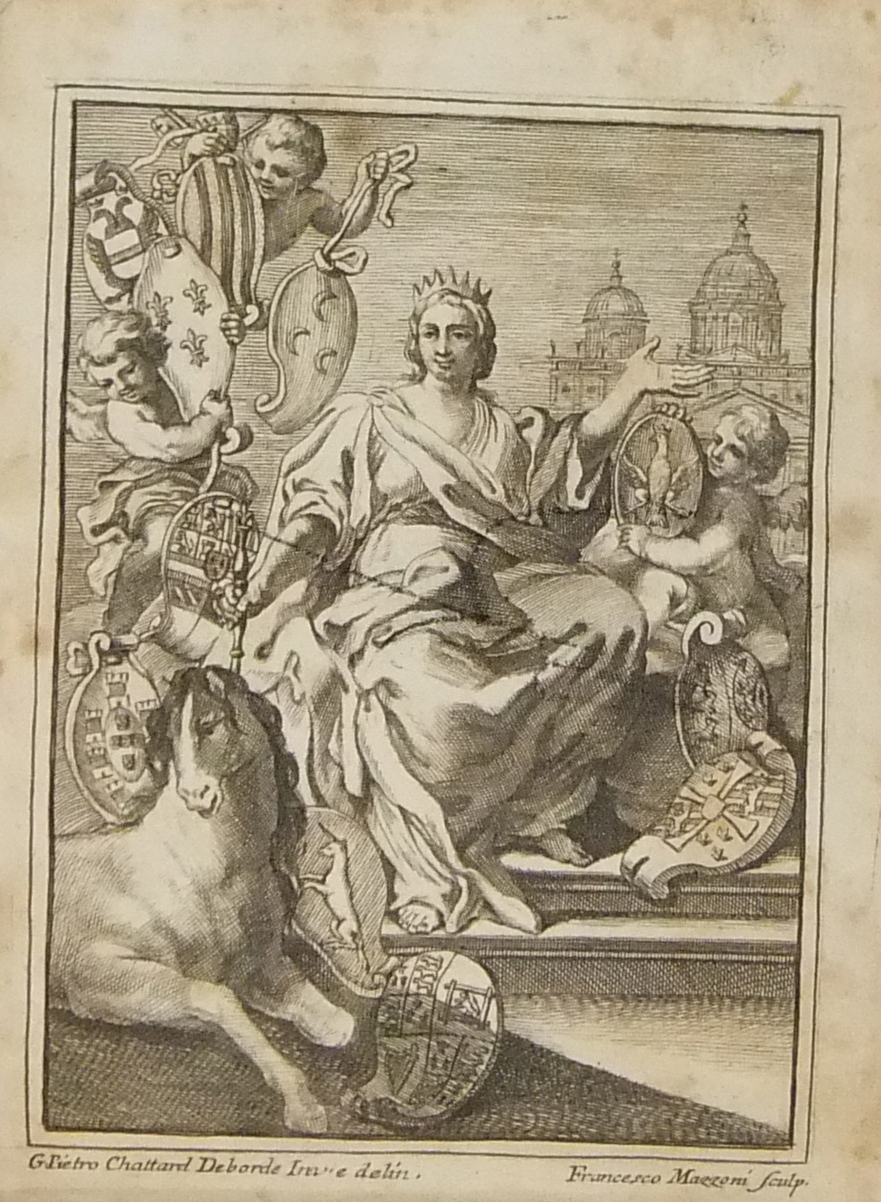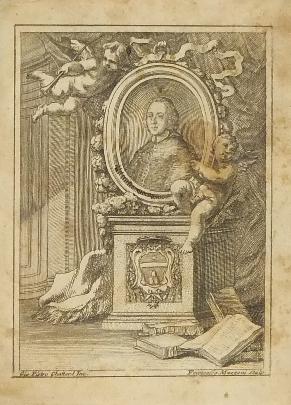 Tavolette cronologiche contenenti la serie de Papi Imperadori e Re che anno regnato dalla nascita di Cristo fino al presente divise in due parti nella prima delle quali ritrovansi descritti per Ordine Alfabetico i detti Monarchi e nell'altra vengono indicati i Diciotto Secoli quali compongono l'Era comune Cristiana. Accresciute ed aumentate fino ai tempi presenti coll'Indicazione delle Persecuzioni della Chiesa. Sedi Vacanti Scismi Concilj Generali Interregni ed altre cose rimarchevoli per servire di guida a chi legge Istorie Profane. Dedicate all'Emo e Rmo Prencipe il Sig. Cardinal Alessandro Albani Primo Diacono di S. R. Chiesa. Dal Sacerdote Girolamo Serangeli. In Roma l'An. Del Giubil. MDCCL.. Gaetano de Rossi Romano incise