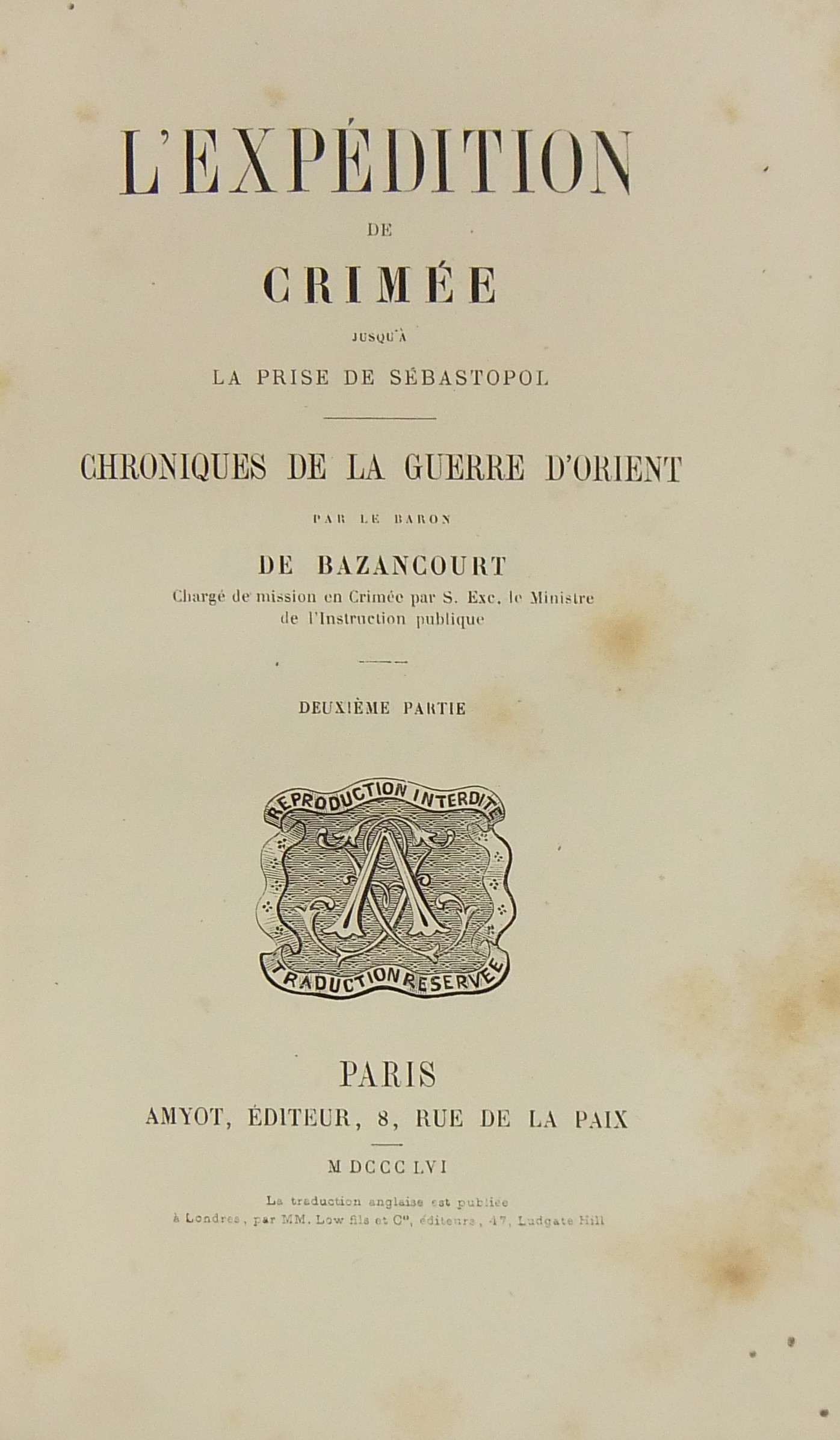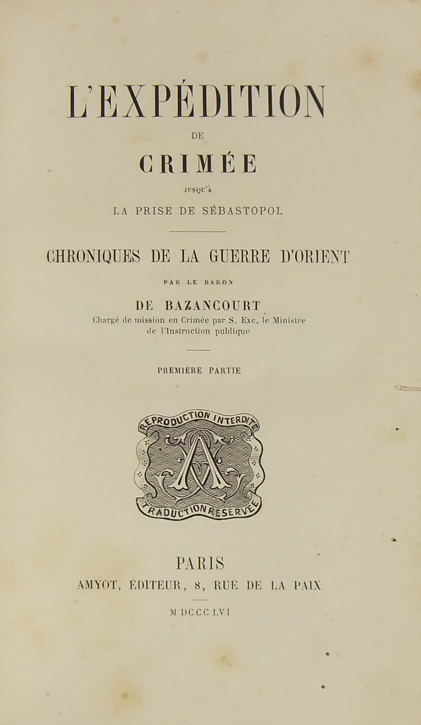 L'expedition de Crimee jusqu'Ã la prise de Sebastopol. Chroniques de la guerre d'Orient