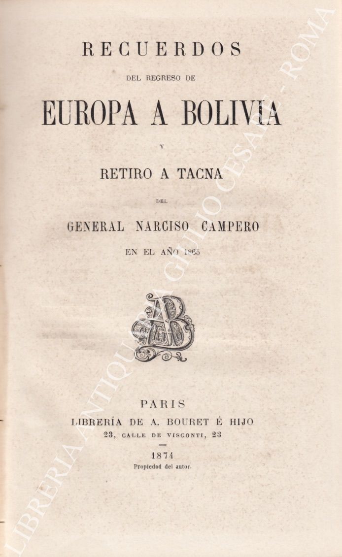 Recuerdos del regreso de Europa a Bolivia y retiro a Tacna del General Narciso Campero en el ano 1865