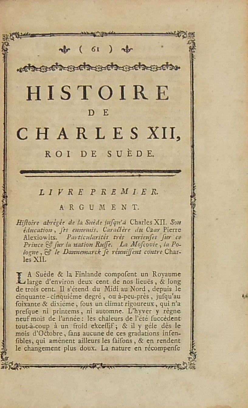 Histoire de Charles XII Roi de Suede avec pieces qui y sont relatives