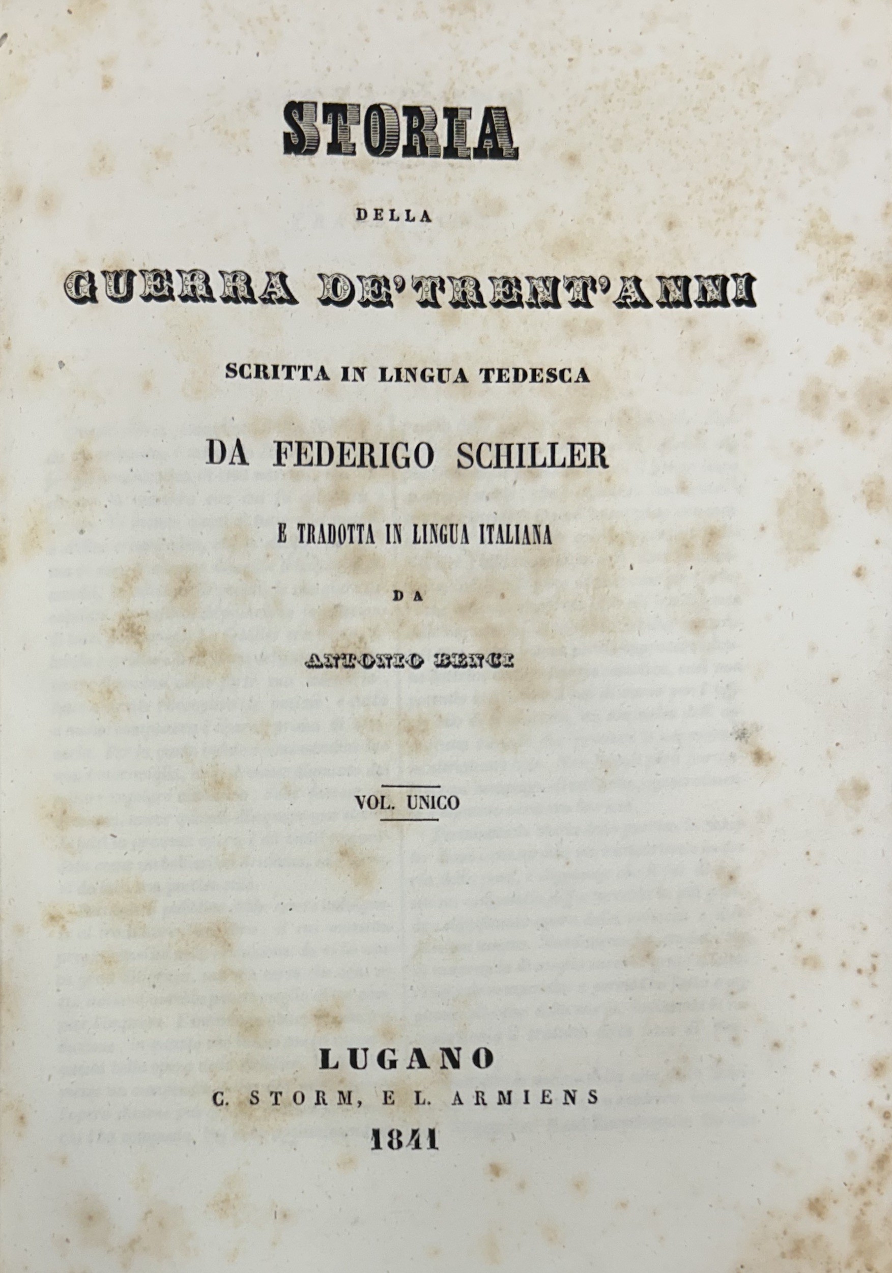 Storia della guerra de' trent'anni scritta in lingua tedesca da Federico Schiller e tradotta in lingua italiana da Antonio Benci. Vol. unico