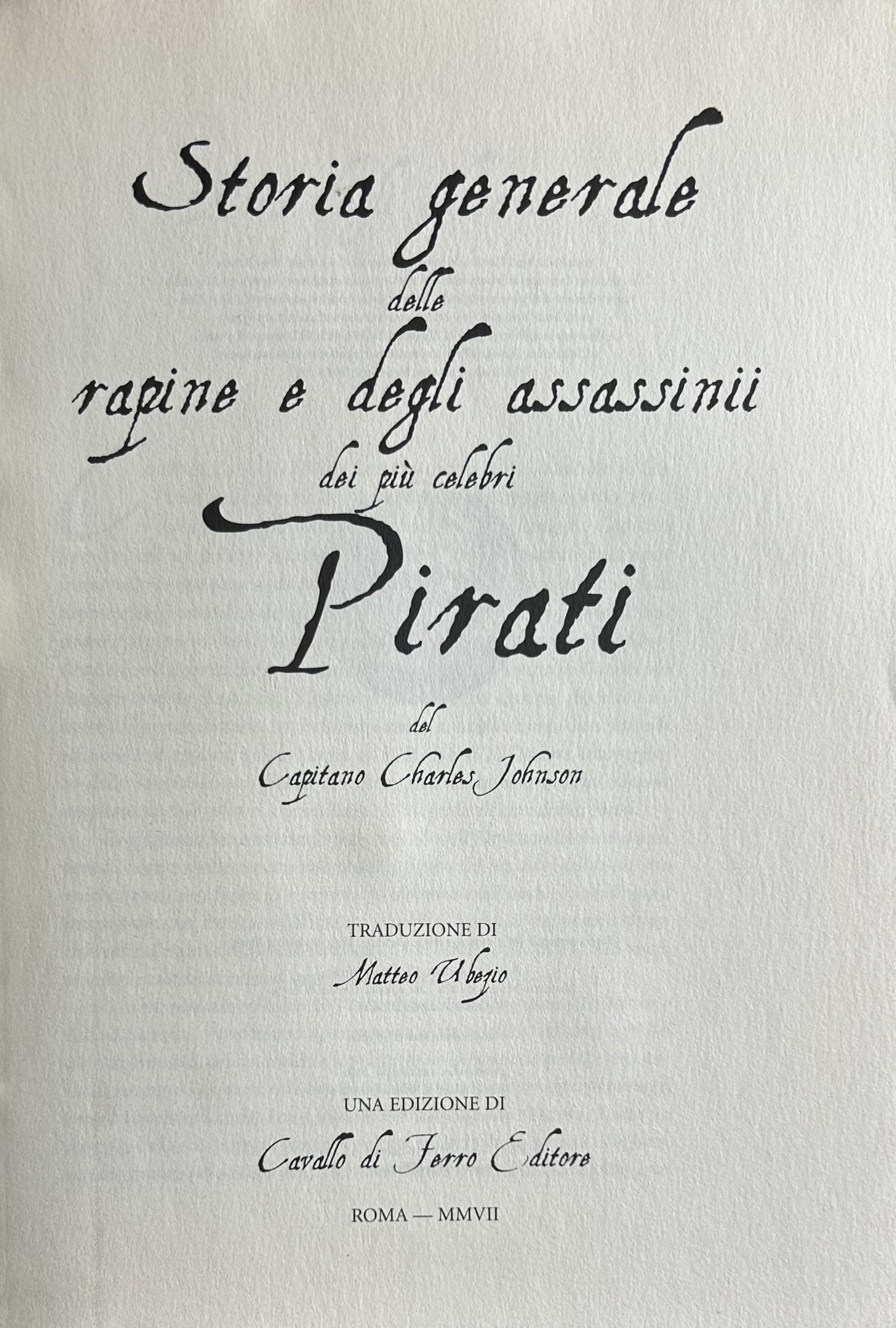 Storia generale delle rapine e degli assassinii dei più celebri pirati. Traduzione di Matteo Ubezio