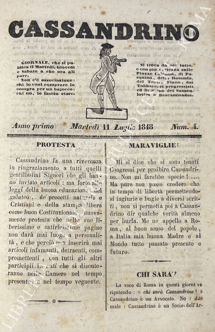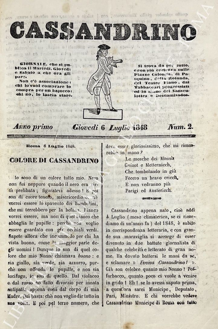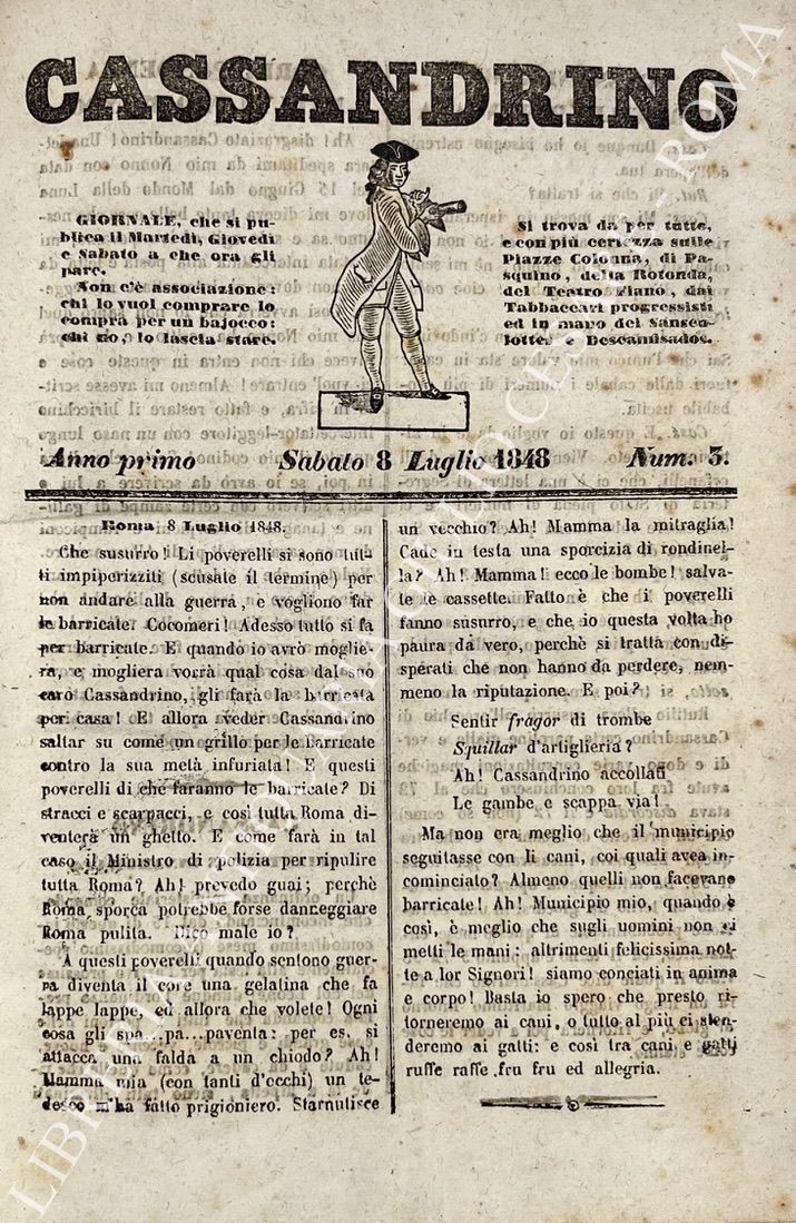 Giornale politico umoristico satirico. Dal n. 1 (martedì 4 luglio 1848) al n. 35 (21 settembre 1848) completo dei supplementi ai numeri 30, 31, 33