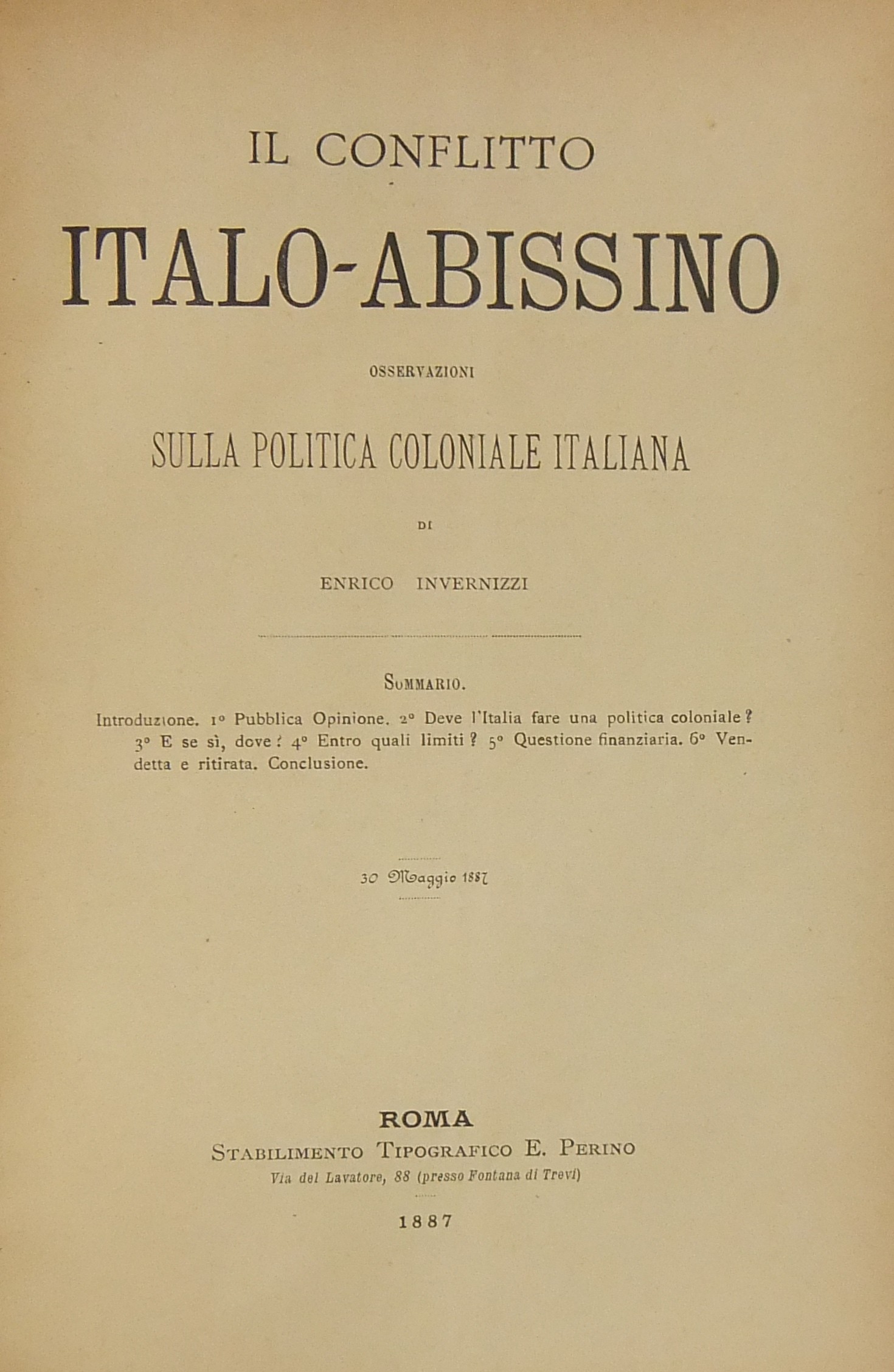 L'Italia e l'Oriente. Studi etnografici storici e politici UNITO A Il conflitto italo-abissino. Osservazioni sulla politica coloniale italiana.