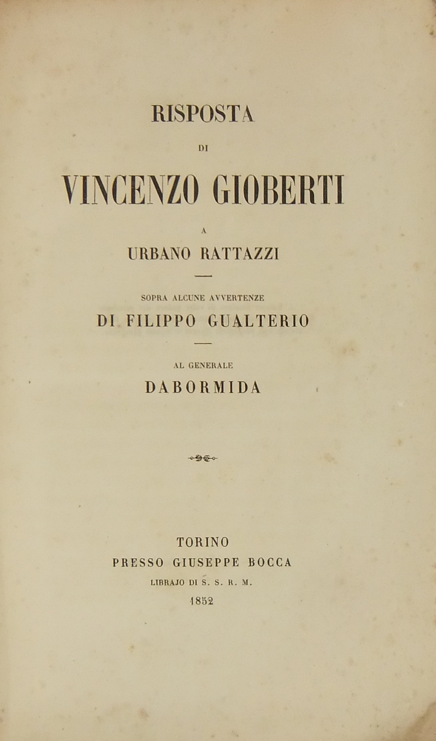 Risposta di Vincenzo Gioberti a Urbano Rattazzi sopra alcune avvertenze di Filippo Gualterio al generale Dabormida
