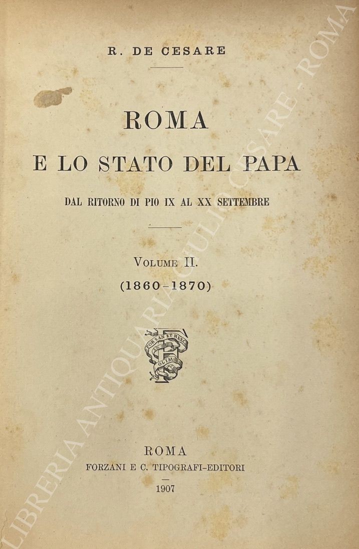Roma e lo Stato del Papa dal ritorno di Pio IX al XX settembre. Vol. I - (1850-1860); Vol. II - (1860-1870)