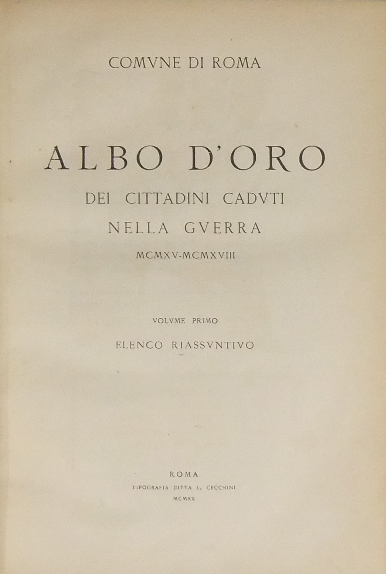 Albo d'oro dei cittadini caduti nella guerra MCMXV-MCMXVIII. Vol. I - Elenco riassuntivo (unico pubblicato)