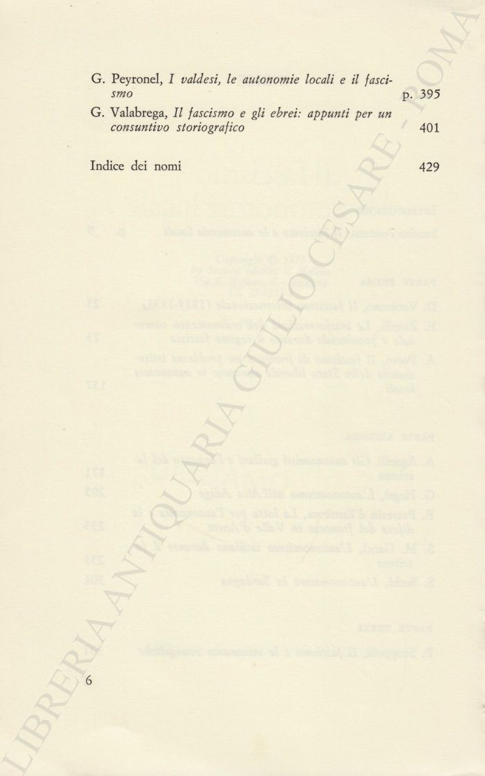 Scritti di: Agnelli A., Fontana S., Ganci S.M., Negri G., Passerin d'Entreves E., Peyronel G., Porro A., Rotelli E., Scoppola P., Sechi S., Valabrega G., Veneruso D.