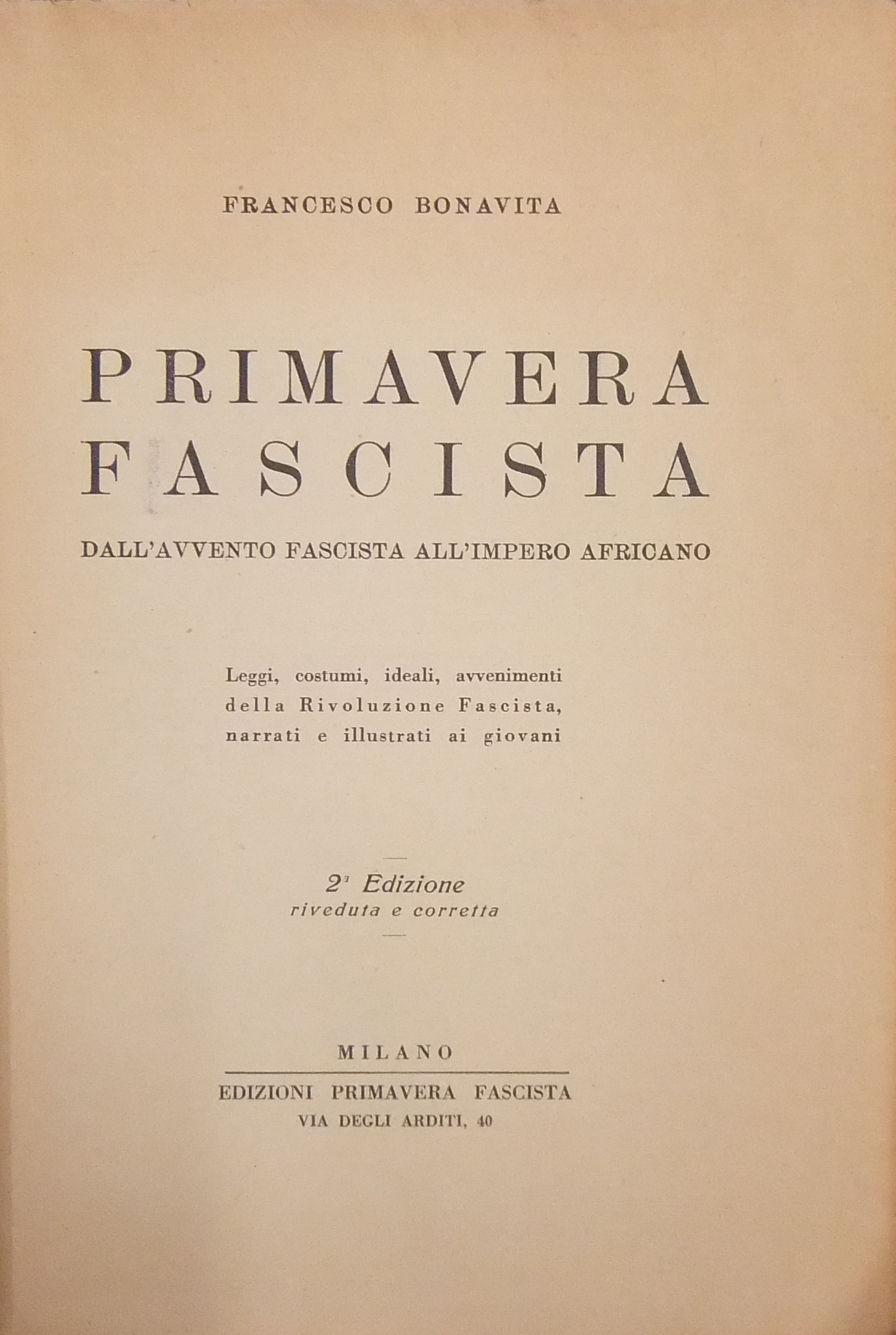 Primavera fascista. Dall'avvento fascista all'impero africano. Leggi, costumi, ideali, avvenimenti della Rivoluzione Fascista, narrati e illustrati ai giovani