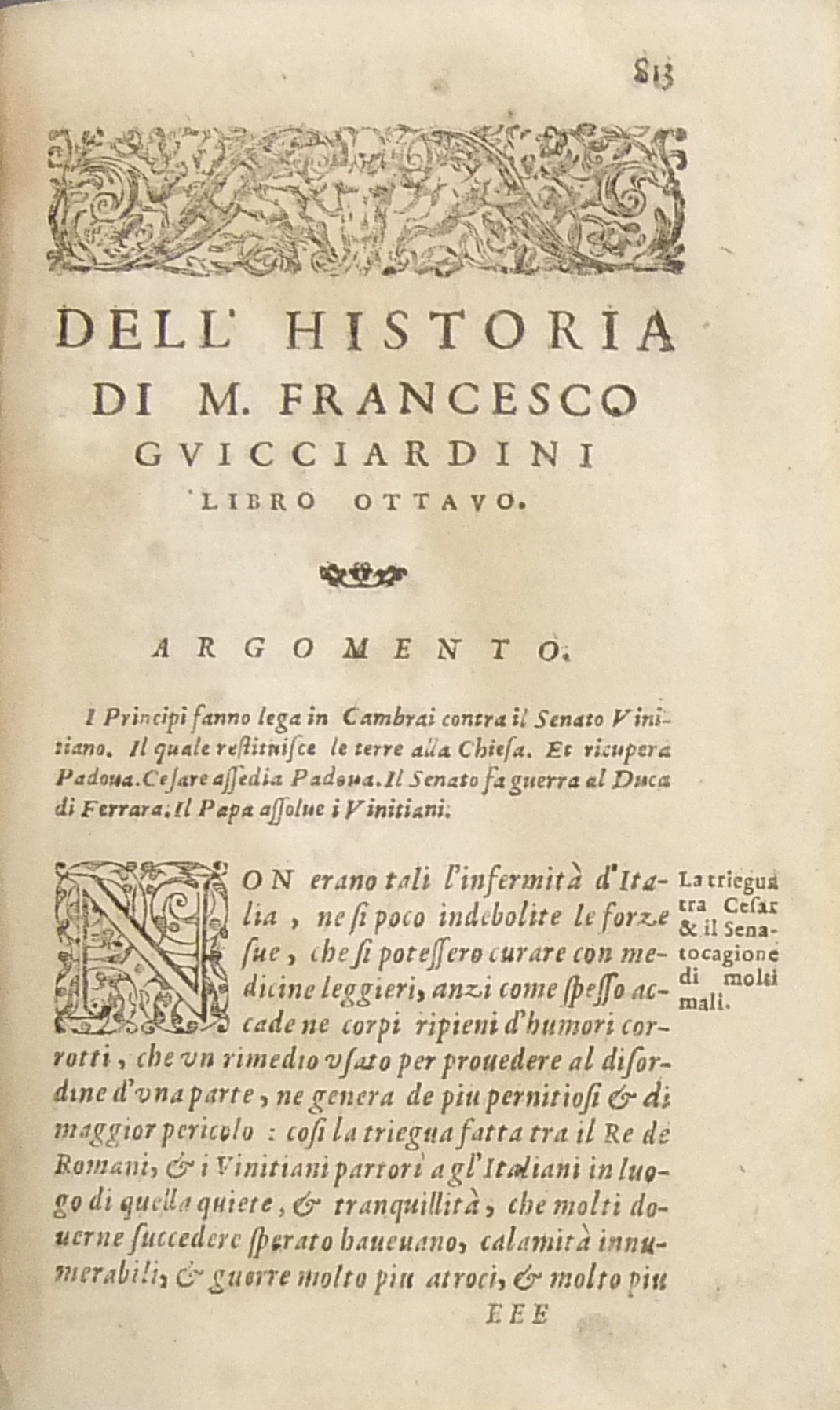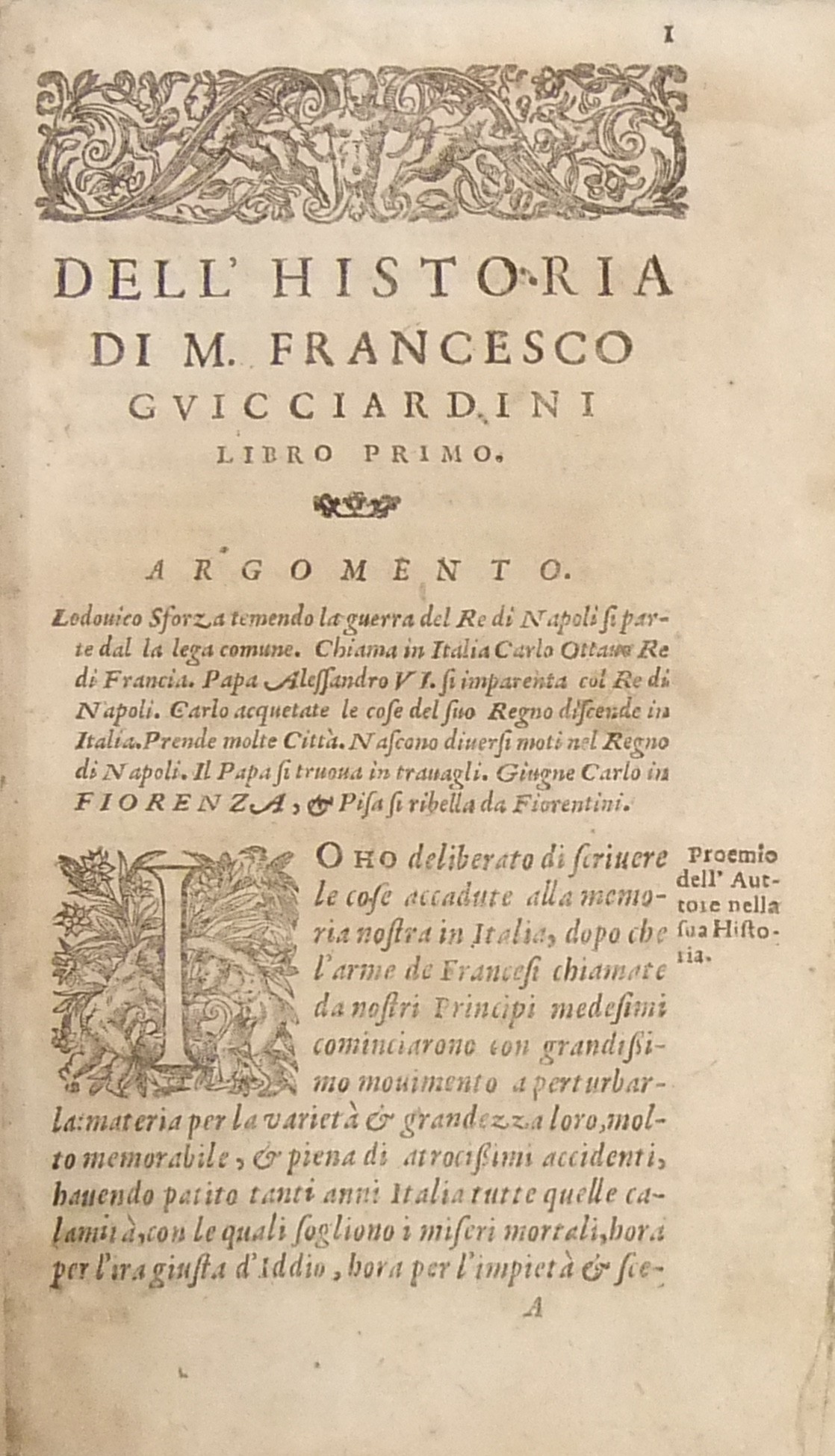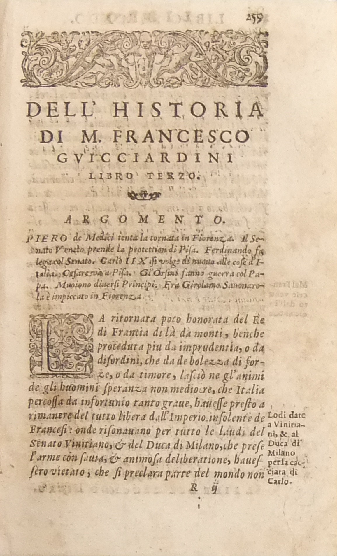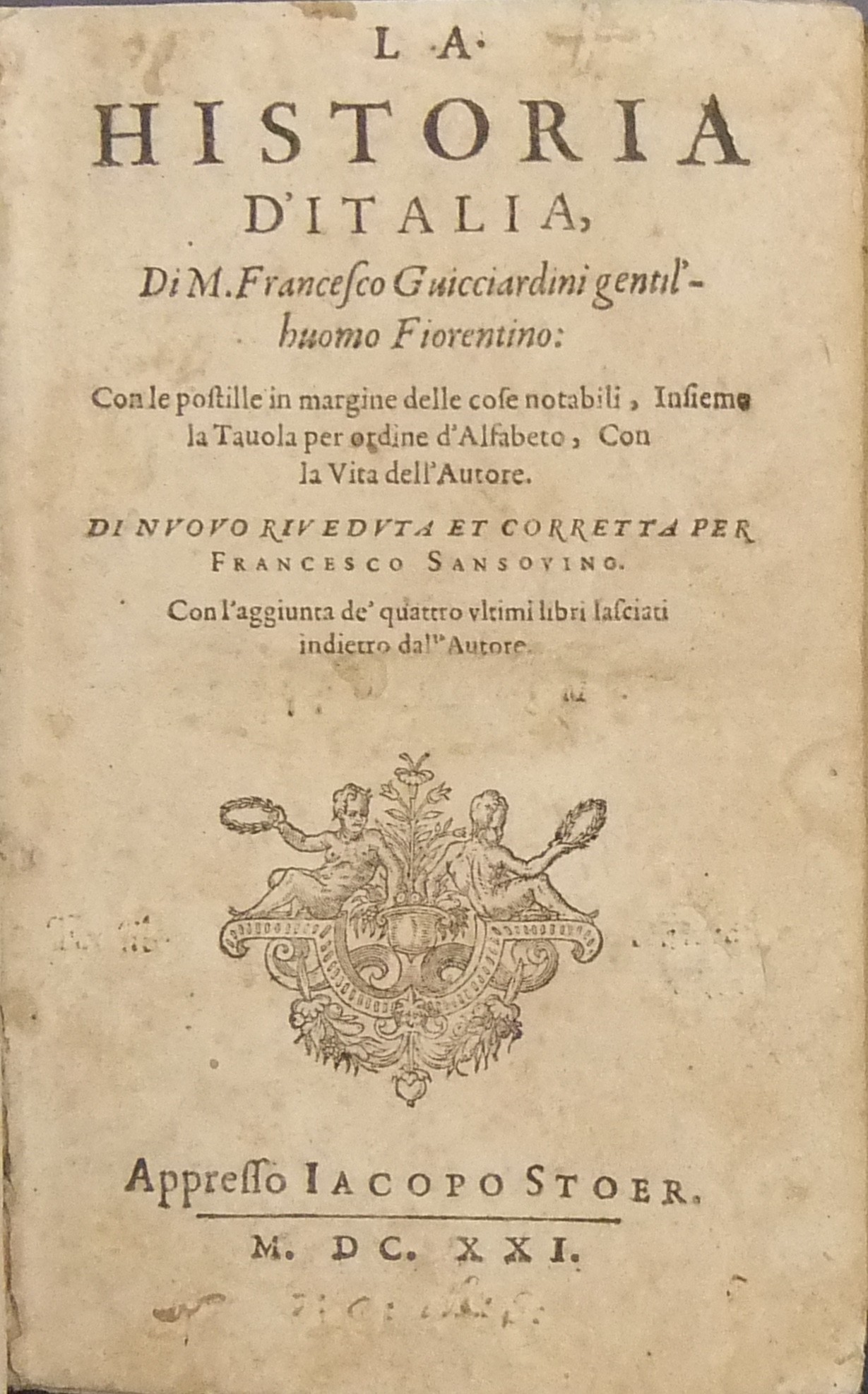 La historia d'Italia con le postille in margine delle cose notabili, Insieme la Tavola per ordine d'Alfabeto, Con la Vita dell'Autore. Di nuovo riveduta et corretta per Francesco Sansovino. Con l'aggiunta de quattro ultimi libri lasciati indietro dall'Autore