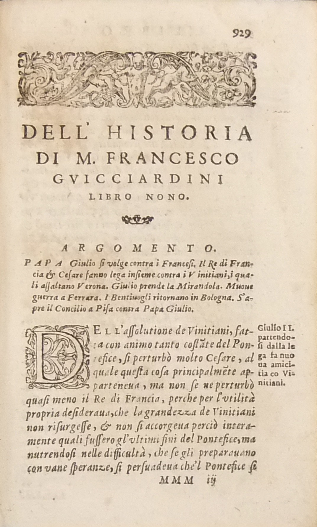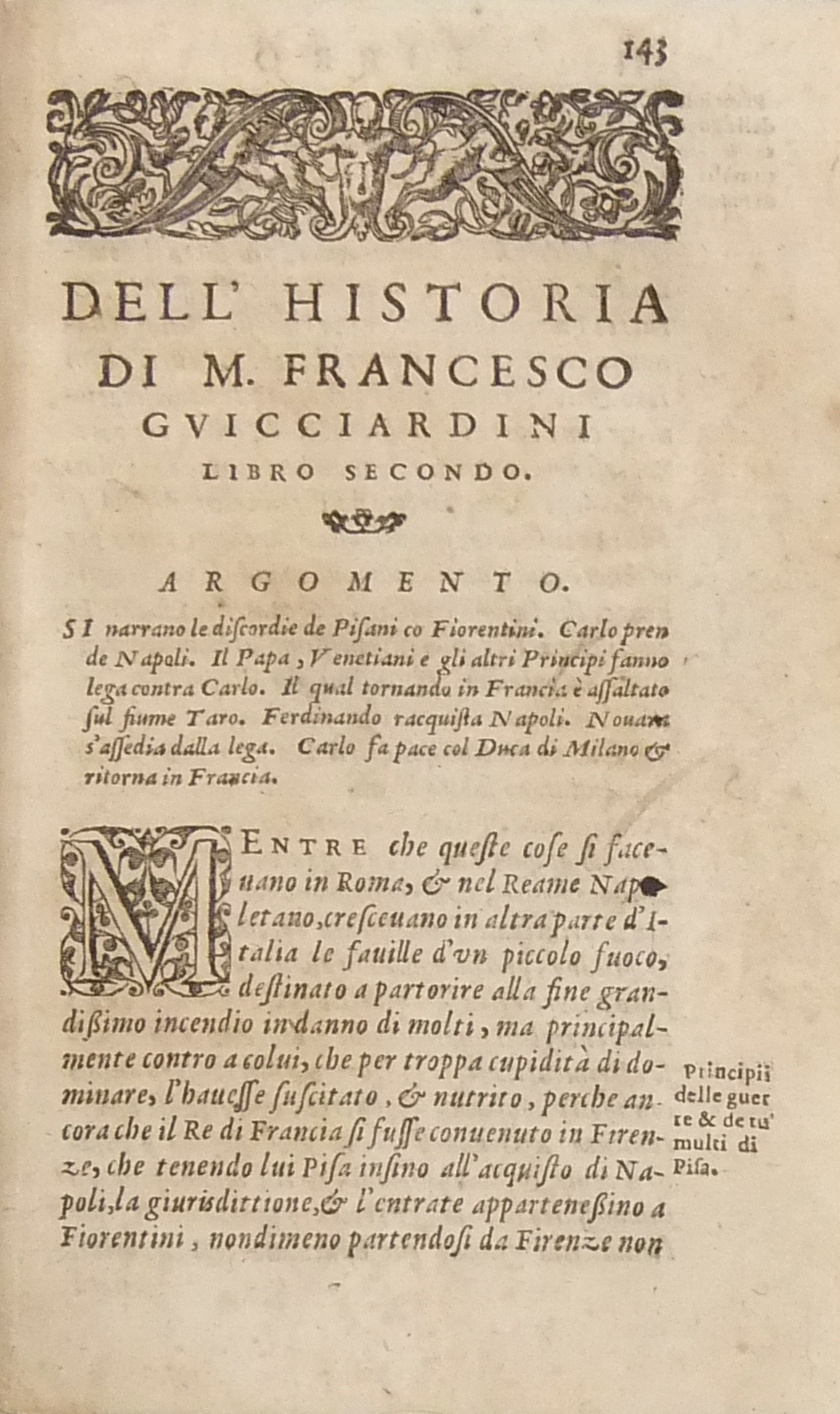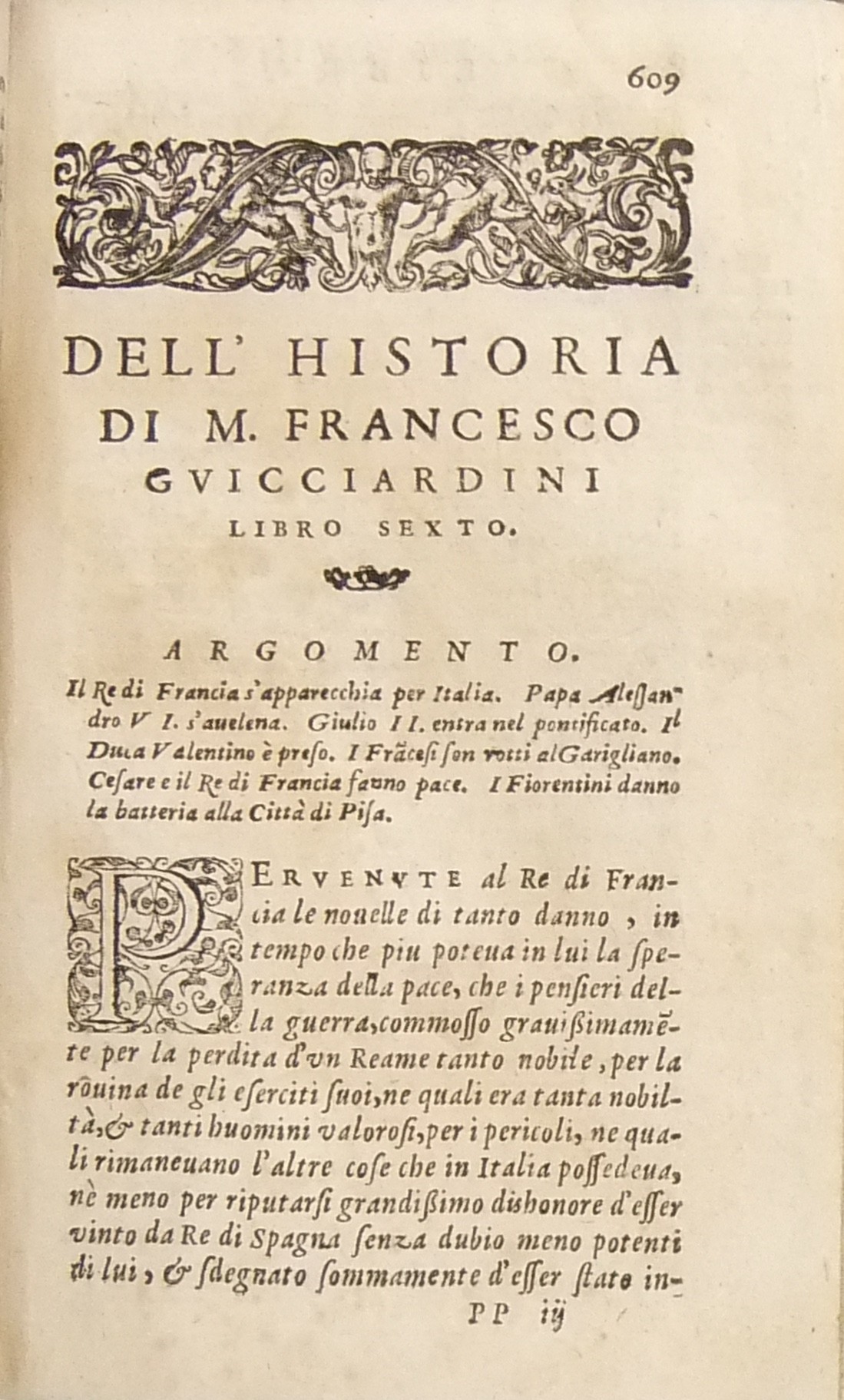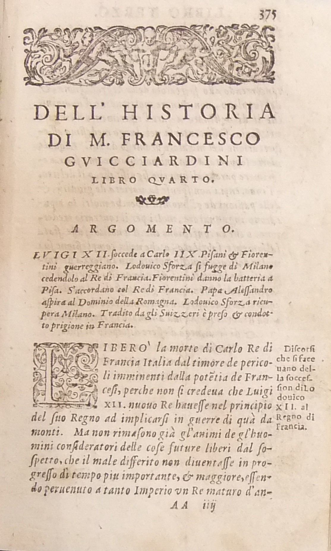 La historia d'Italia con le postille in margine delle cose notabili, Insieme la Tavola per ordine d'Alfabeto, Con la Vita dell'Autore. Di nuovo riveduta et corretta per Francesco Sansovino. Con l'aggiunta de quattro ultimi libri lasciati indietro dall'Autore