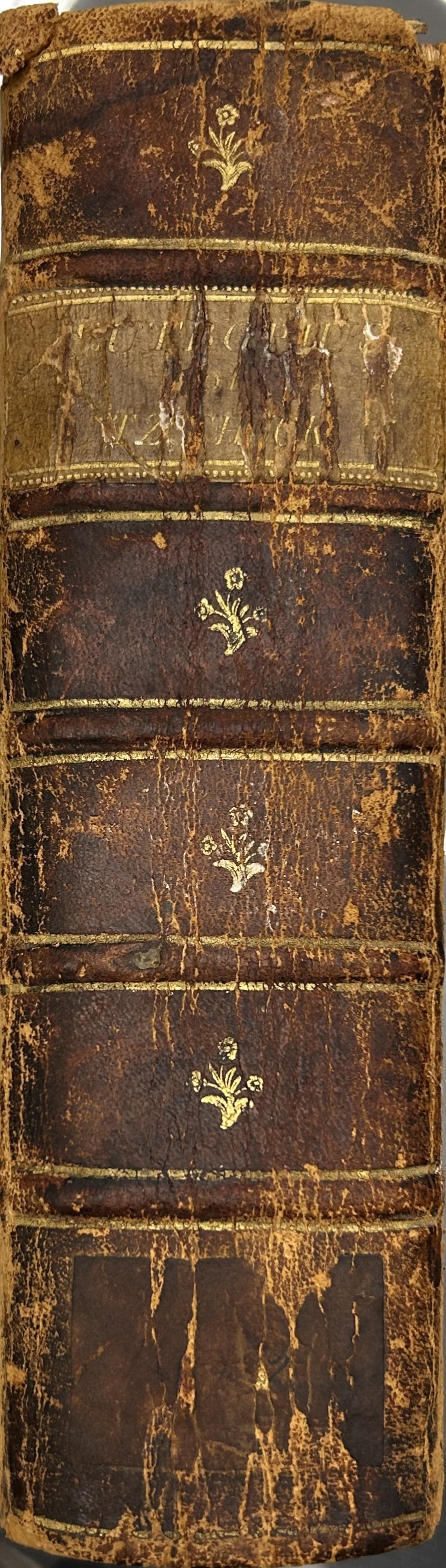 Rilegatura: m.pelle ottocentesca cordonata con tass. e fregi oro al dorso