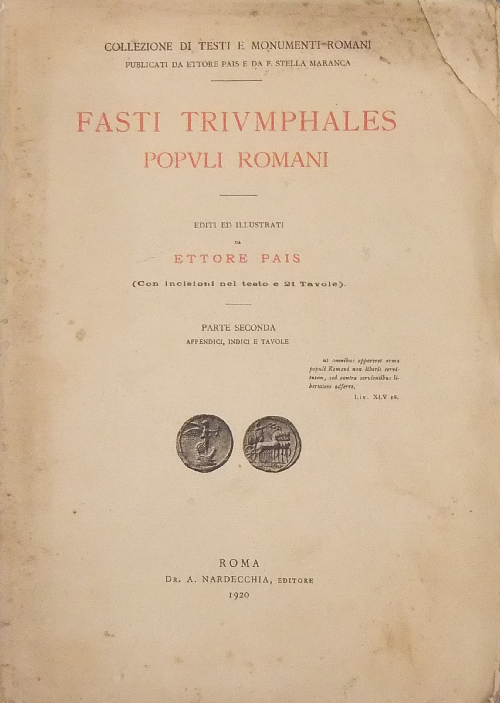 I fasti di Roma. I fasti trionfali del popolo romano. Vol. unico, Tomo I - Introduzione storica; Testo dei fasti capitolini; Commento storico dall'Età Regia a quella di Mario. Parte II - (Fasti triumphales populi romani) - Appendici, Indici e Tavole