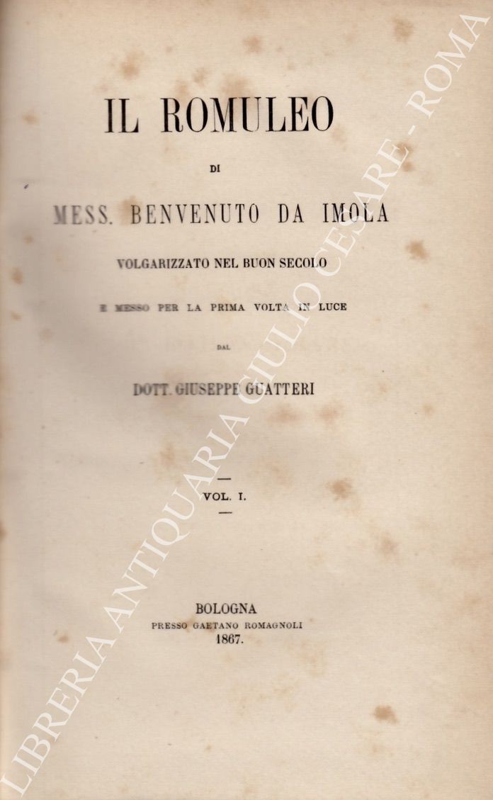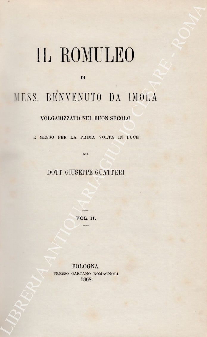 Il romuleo di Mess. Benvenuto da Imola volgarizzato nel buon secolo e messo per la prima volta in luce dal Dott. Giuseppe Guattieri
